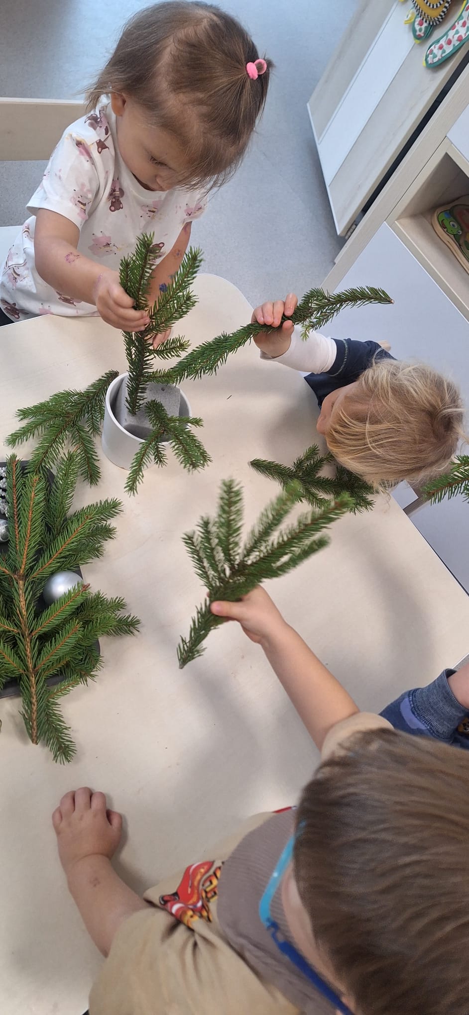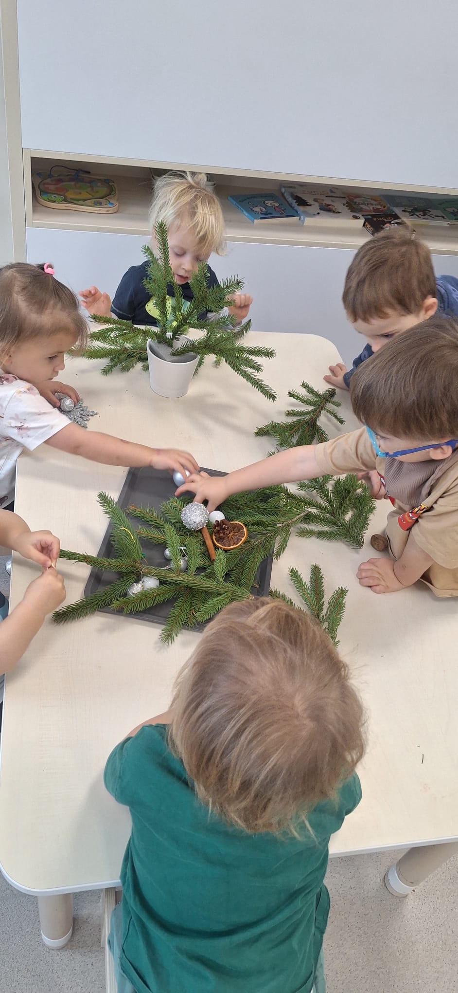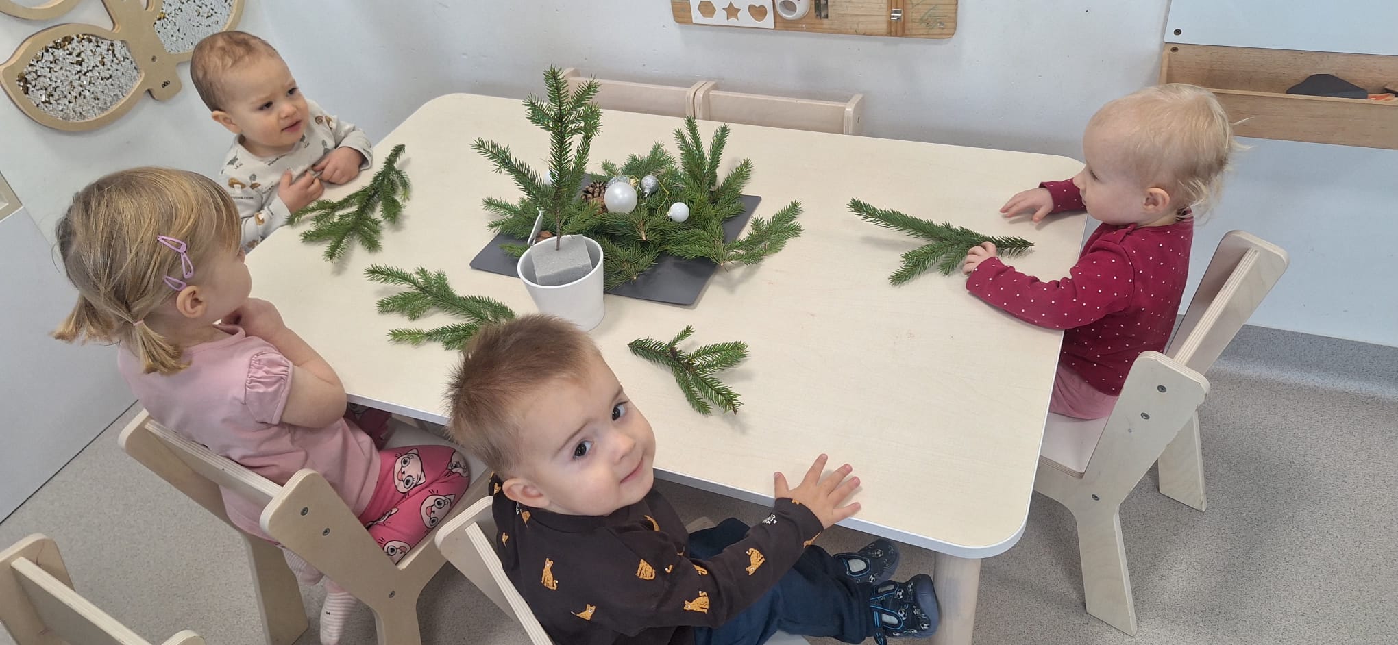 Kolejne dni poświęciliśmy na świąteczne przygotowania. Nasz Klubik wypełnił piękny zapach prawdziwego świerku, a z jego gałązek Dzieci tworzyły pachnące, zimowe stroiki. 🌲✨