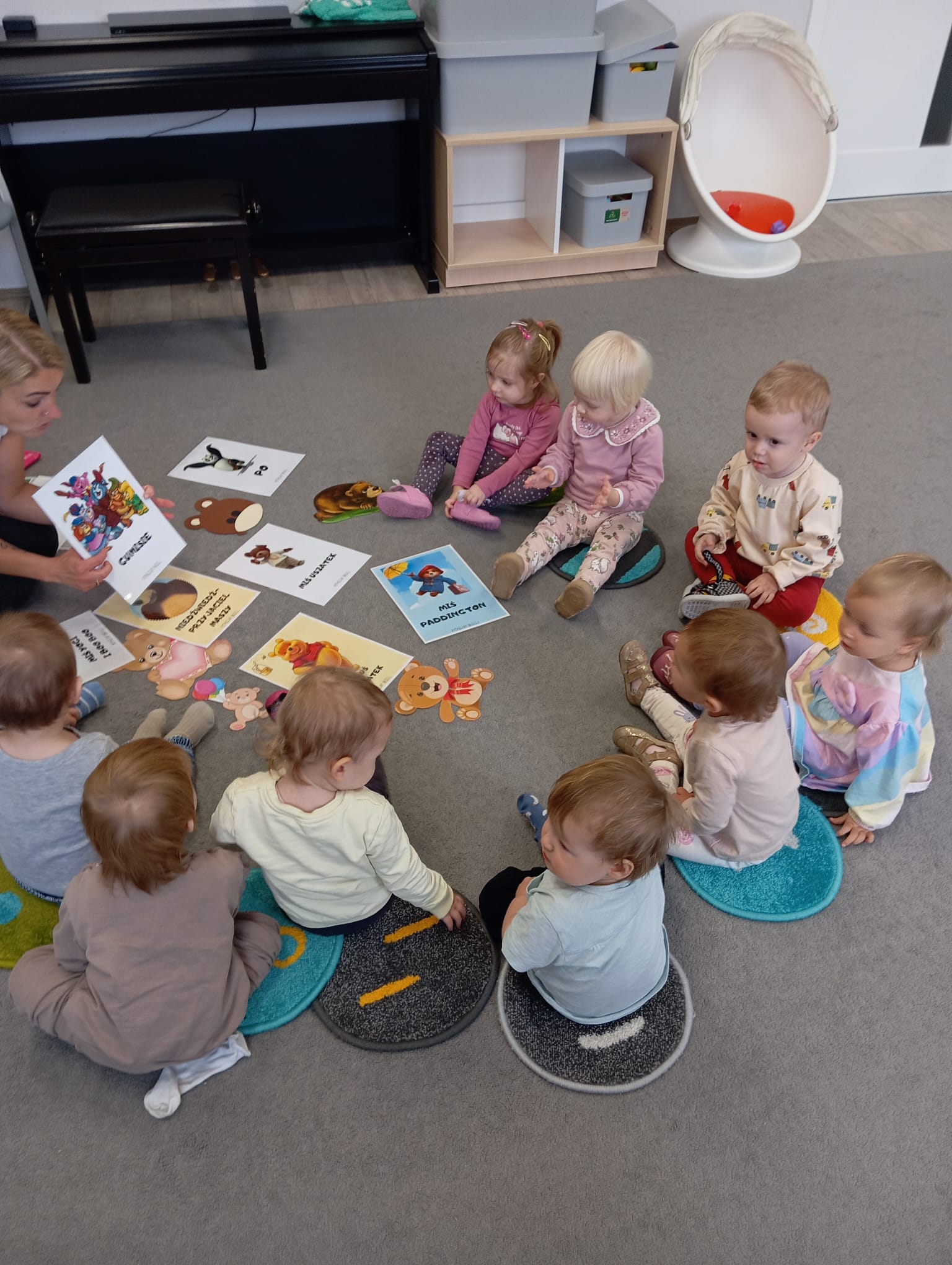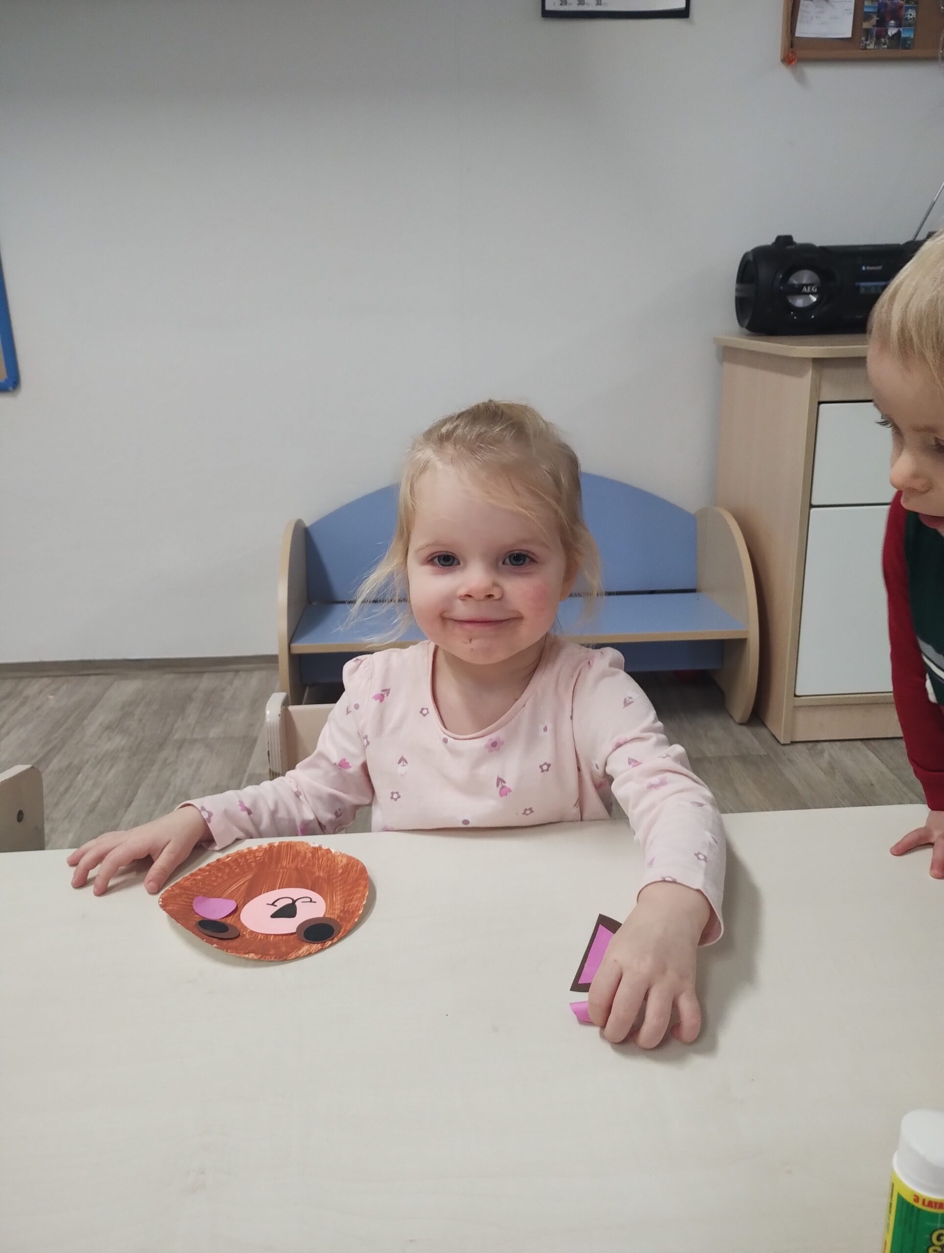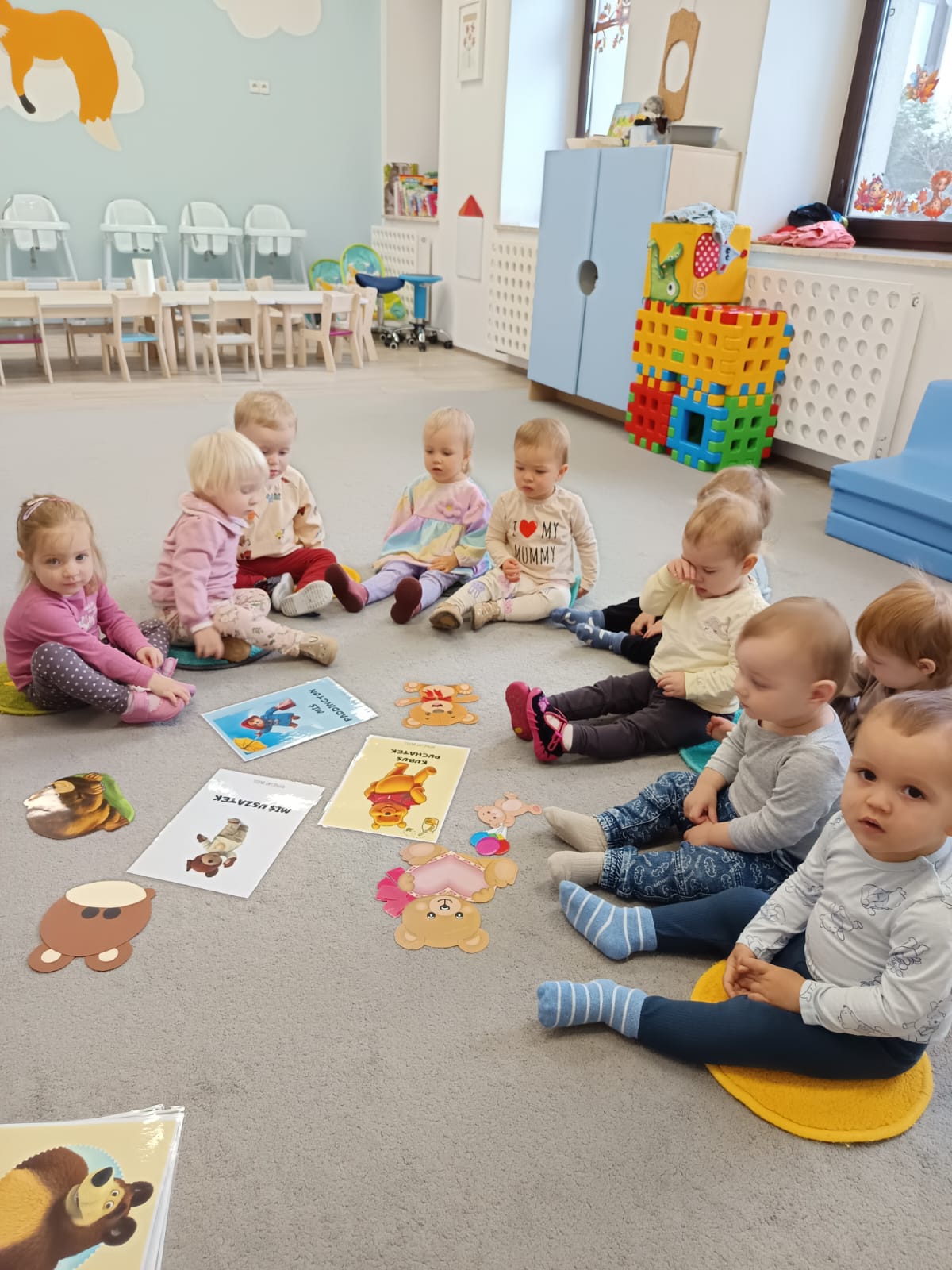 Tydzień o misiach to pełne ciepła i radosnej zabawy zajęcia, którego motywem przewodnim były ulubione pluszowe misie dzieci. W tym tygodniu dzieci prezentowały swoje pluszaki i nazywały ich cechy: kolor, wielkość czy imię. W części ruchowej dzieci naśladowały ruchy misiów, maszerując, kołysząc się i robiąc misiowe ślady. Dzięki temu doskonaliły swoją koordynację i sprawność motoryczną. W trakcie zajęć plastycznych, tworzyliśmy piękne, kolorowe portrety misiów. Wspólnie tańczyliśmy do piosenek o misiach.