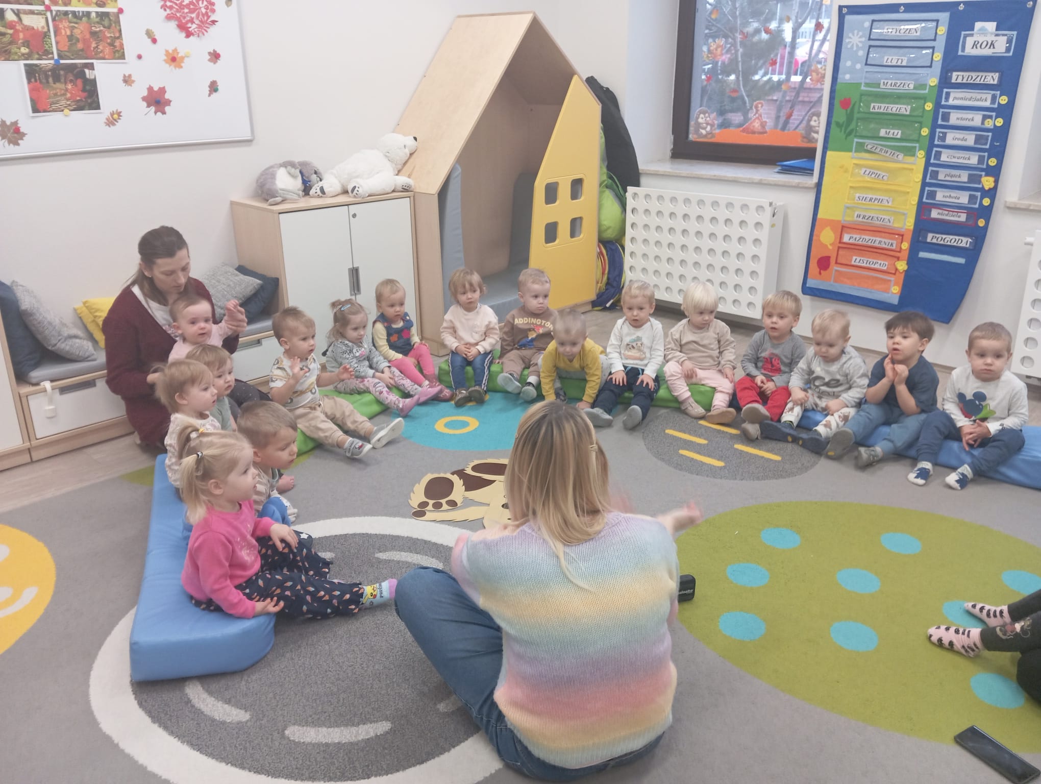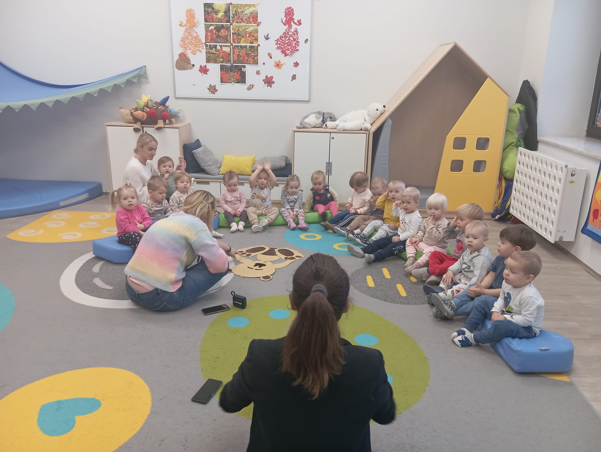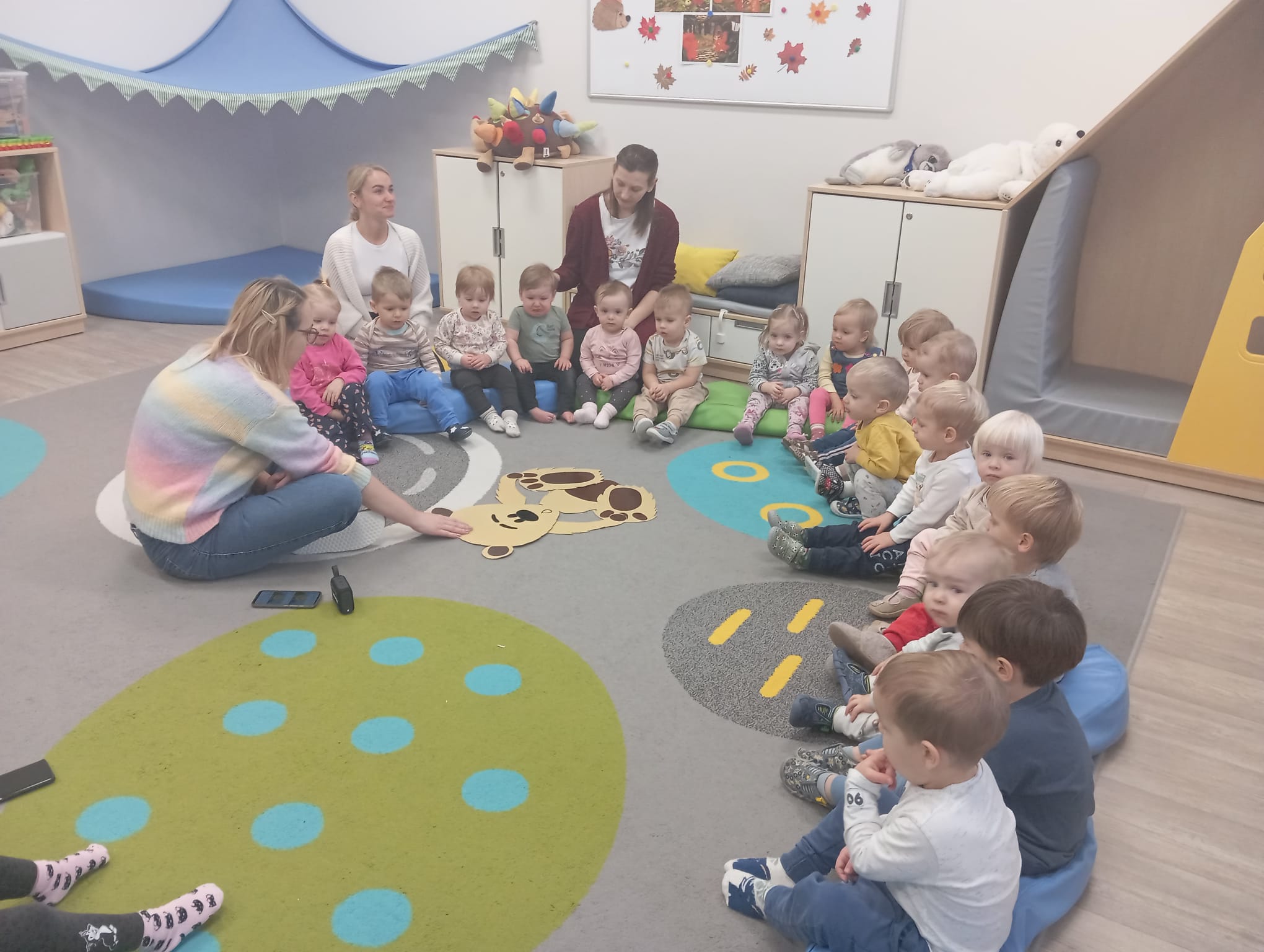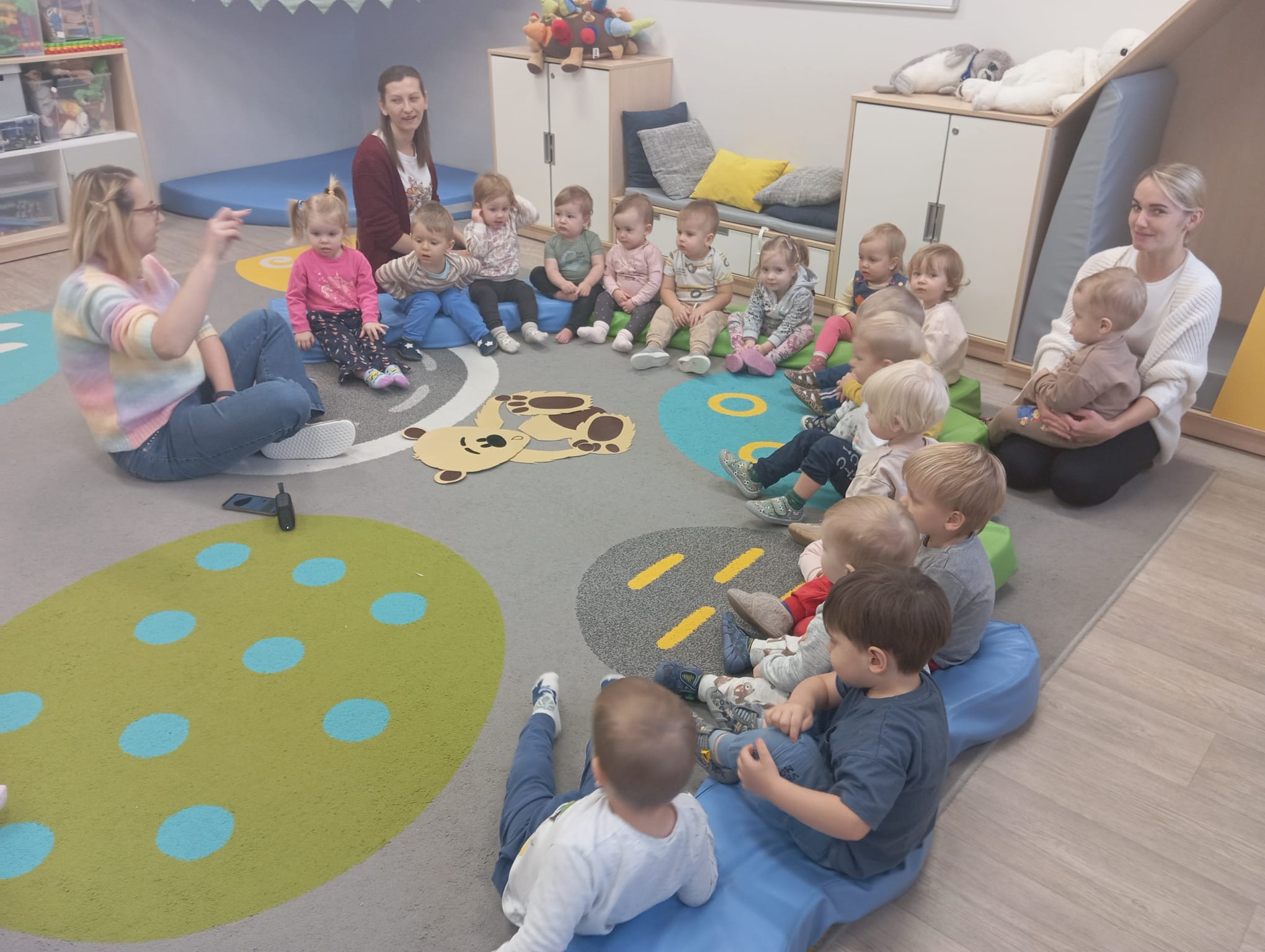 Tydzień o misiach to pełne ciepła i radosnej zabawy zajęcia, którego motywem przewodnim były ulubione pluszowe misie dzieci. W tym tygodniu dzieci prezentowały swoje pluszaki i nazywały ich cechy: kolor, wielkość czy imię. W części ruchowej dzieci naśladowały ruchy misiów, maszerując, kołysząc się i robiąc misiowe ślady. Dzięki temu doskonaliły swoją koordynację i sprawność motoryczną. W trakcie zajęć plastycznych, tworzyliśmy piękne, kolorowe portrety misiów. Wspólnie tańczyliśmy do piosenek o misiach.