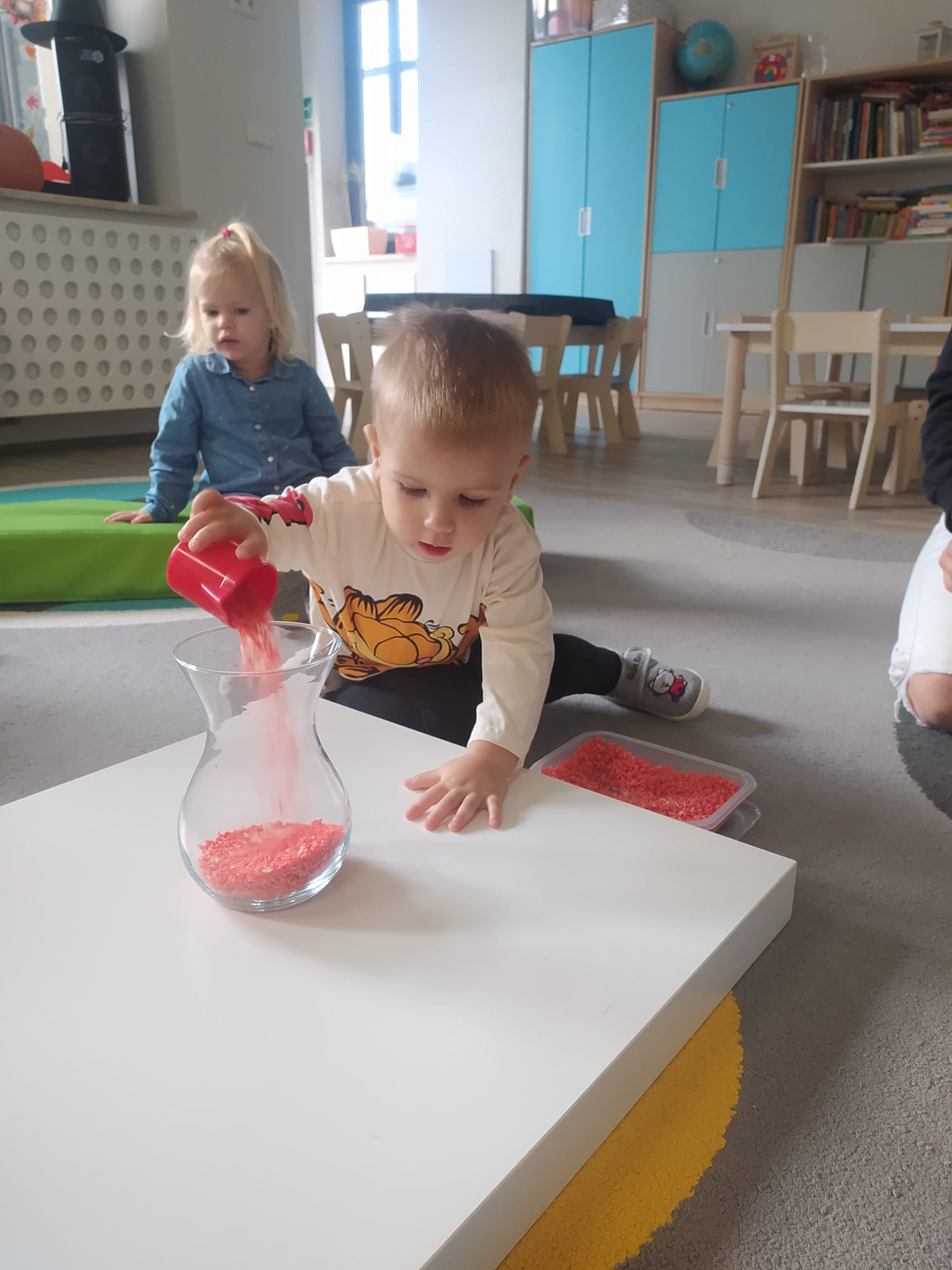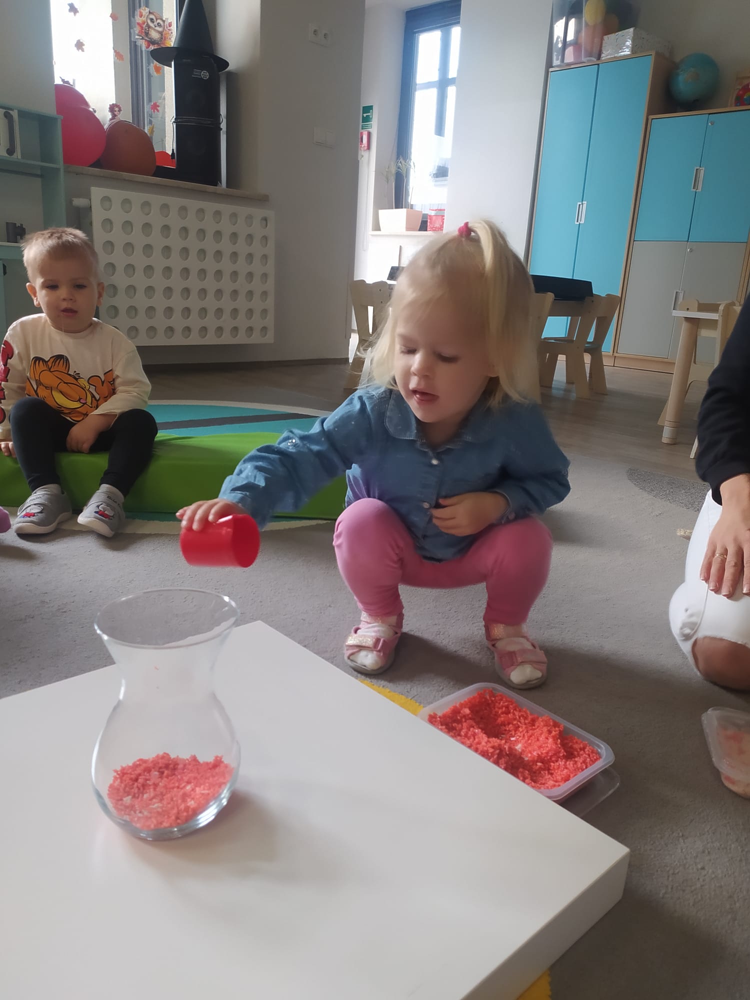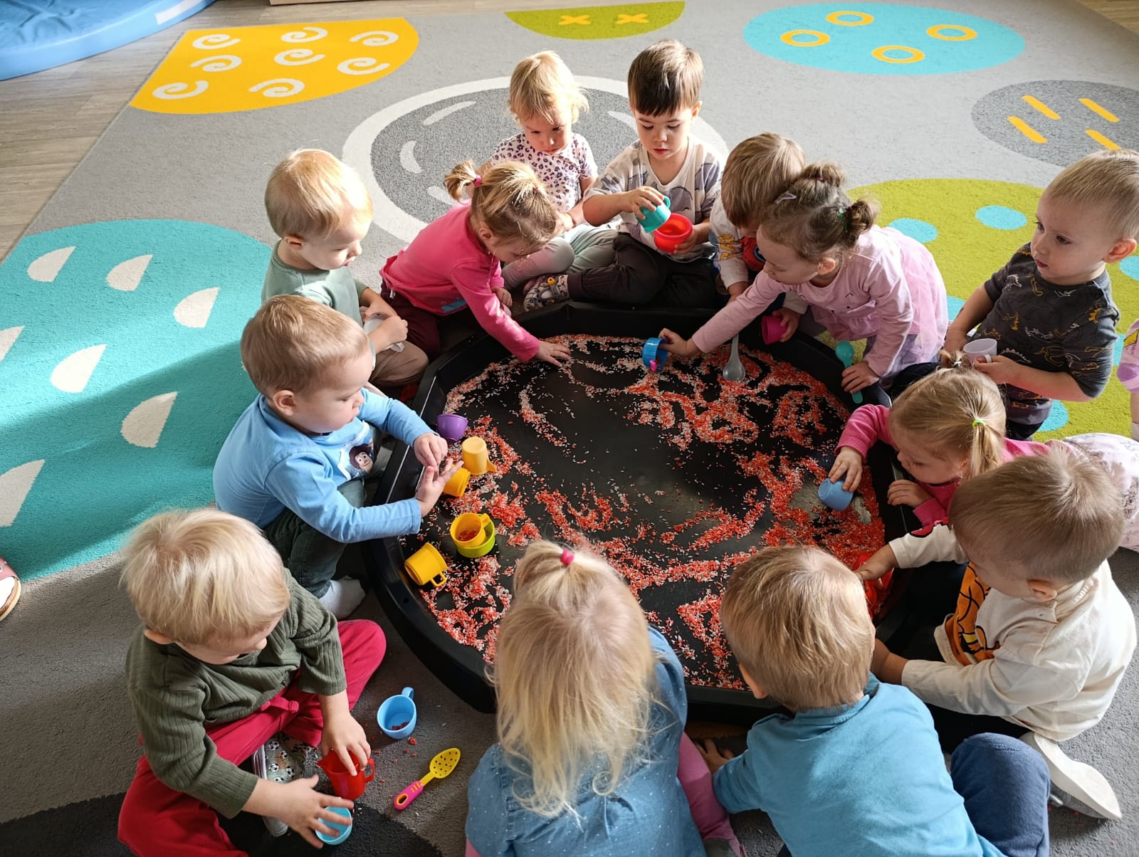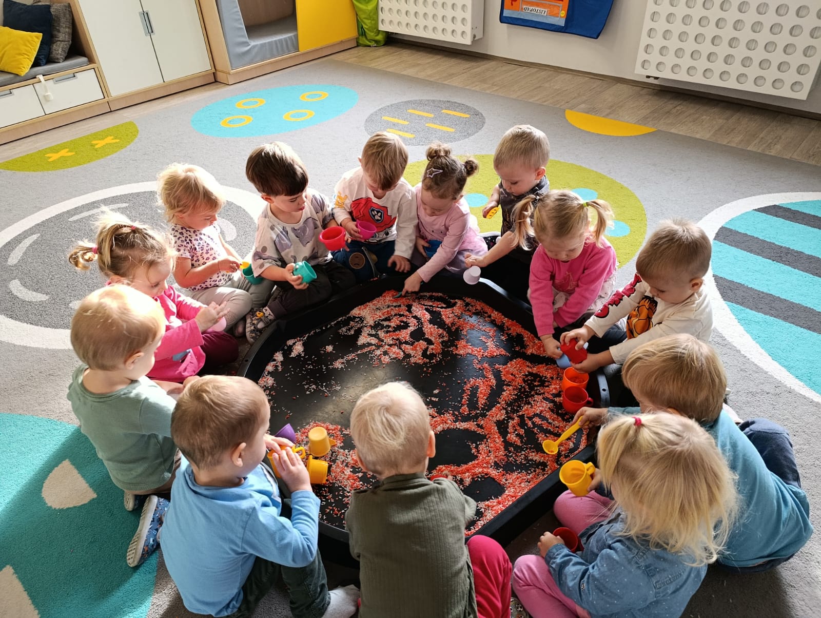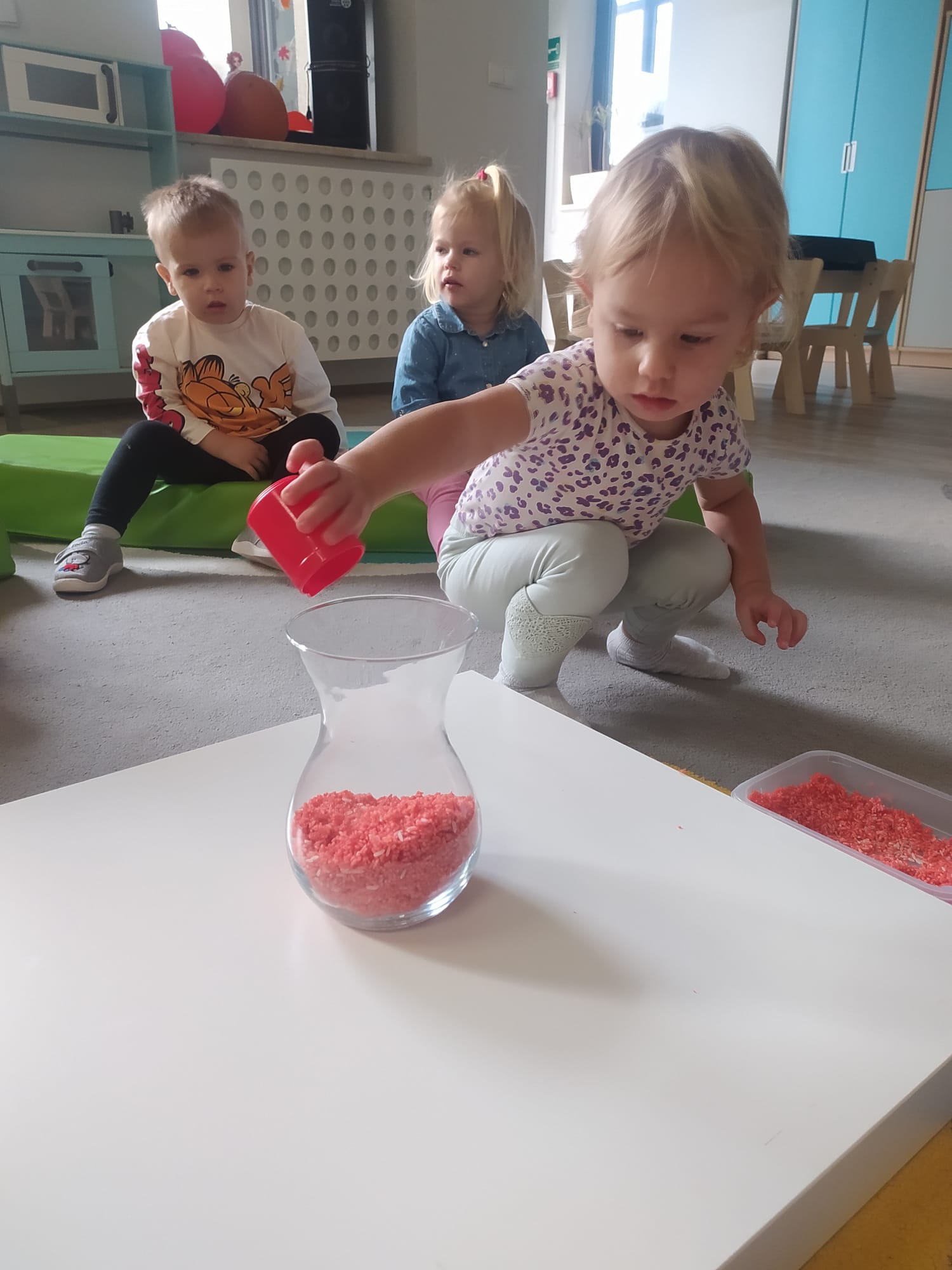 W poprzednim tygodniu dzieci wysłuchały krótkiej rozmowy na temat naszego kraju- Polski. Opowiadały gdzie mieszkają i próbowały nazwać symbole narodowe. Wspólnie obejrzeliśmy ilustracje przedstawiające flagę, godło i mapę Polski. Maluszki dowiedziały się, że flaga ma dwa kolory- biały i czerwony, a na godle znajduje się biały orzeł. Następnie dzieci z powagą wysłuchały fragmentu hymnu narodowego, ucząc się, że podczas jego jego odtwarzania należy zachować postawę szacunku. Podczas zajęć plastycznych wykonaliśmy piękne flagi. Nie zabrakło też zabaw sensorycznych i ćwiczeń motoryki małej.
