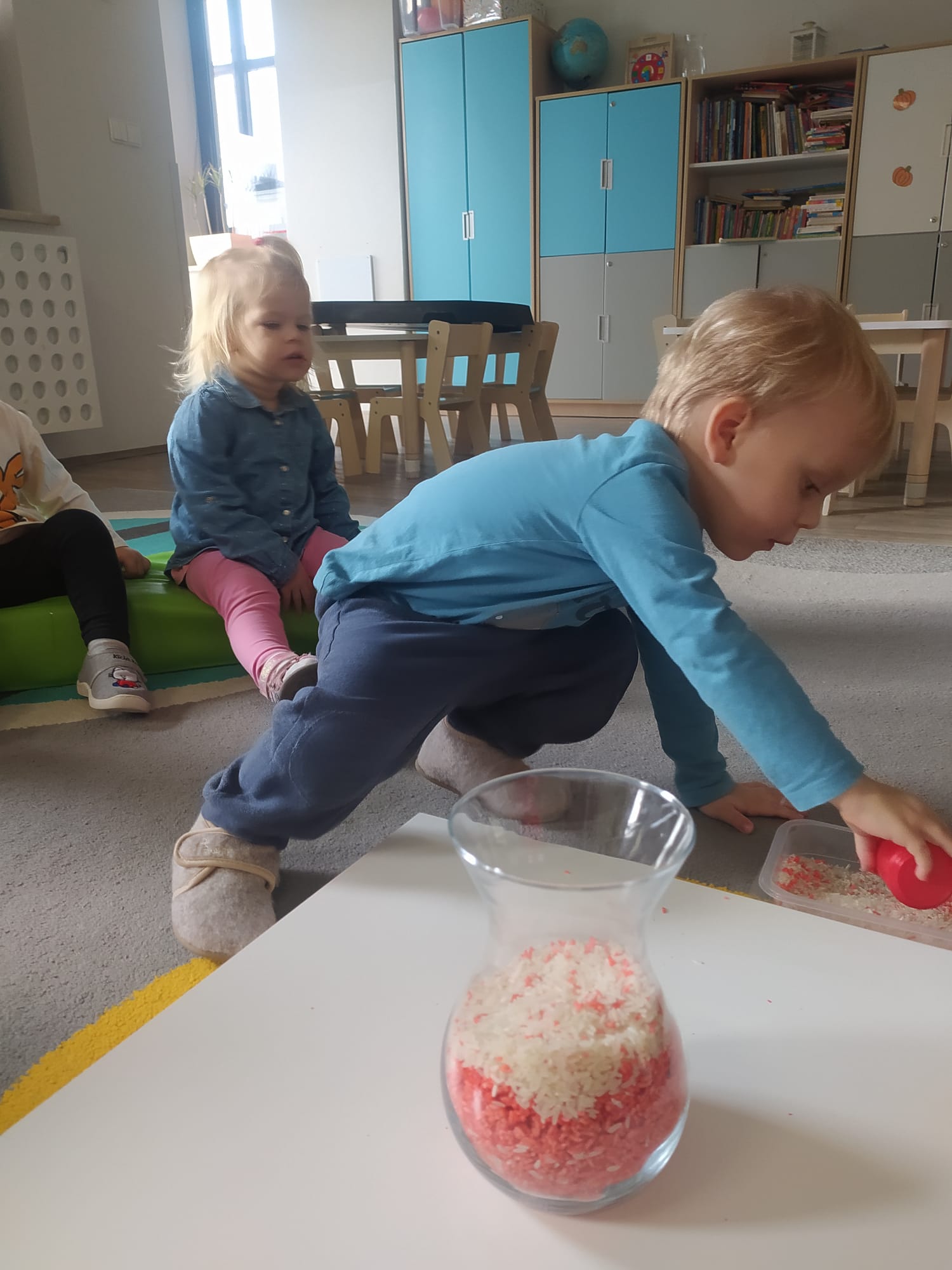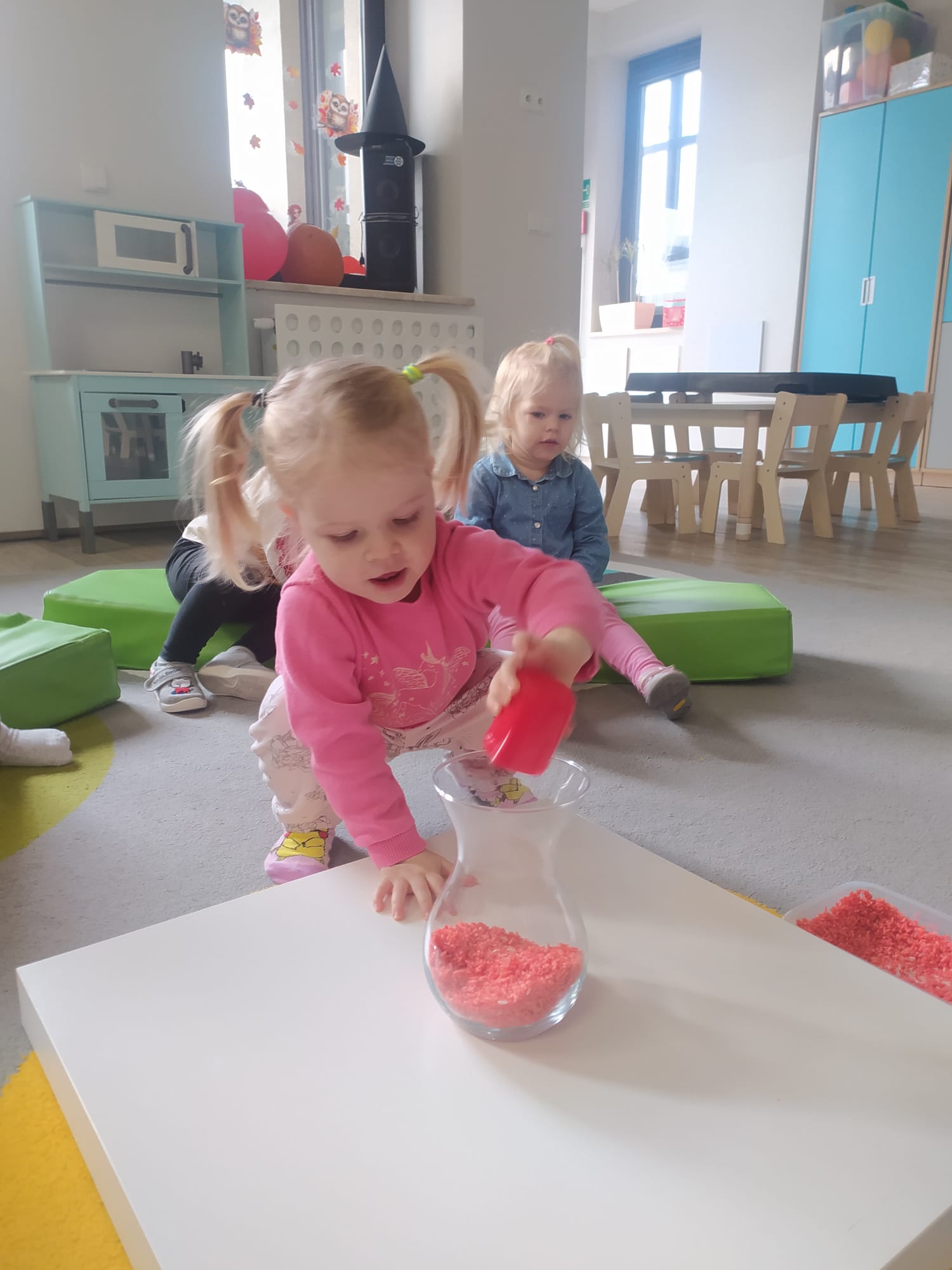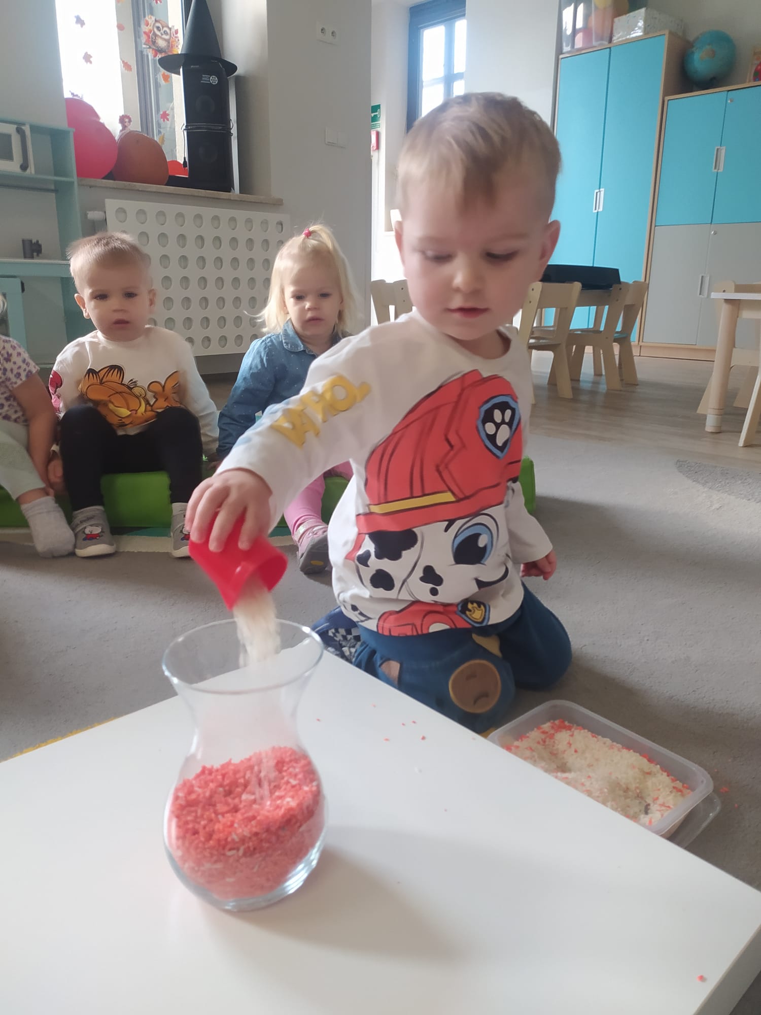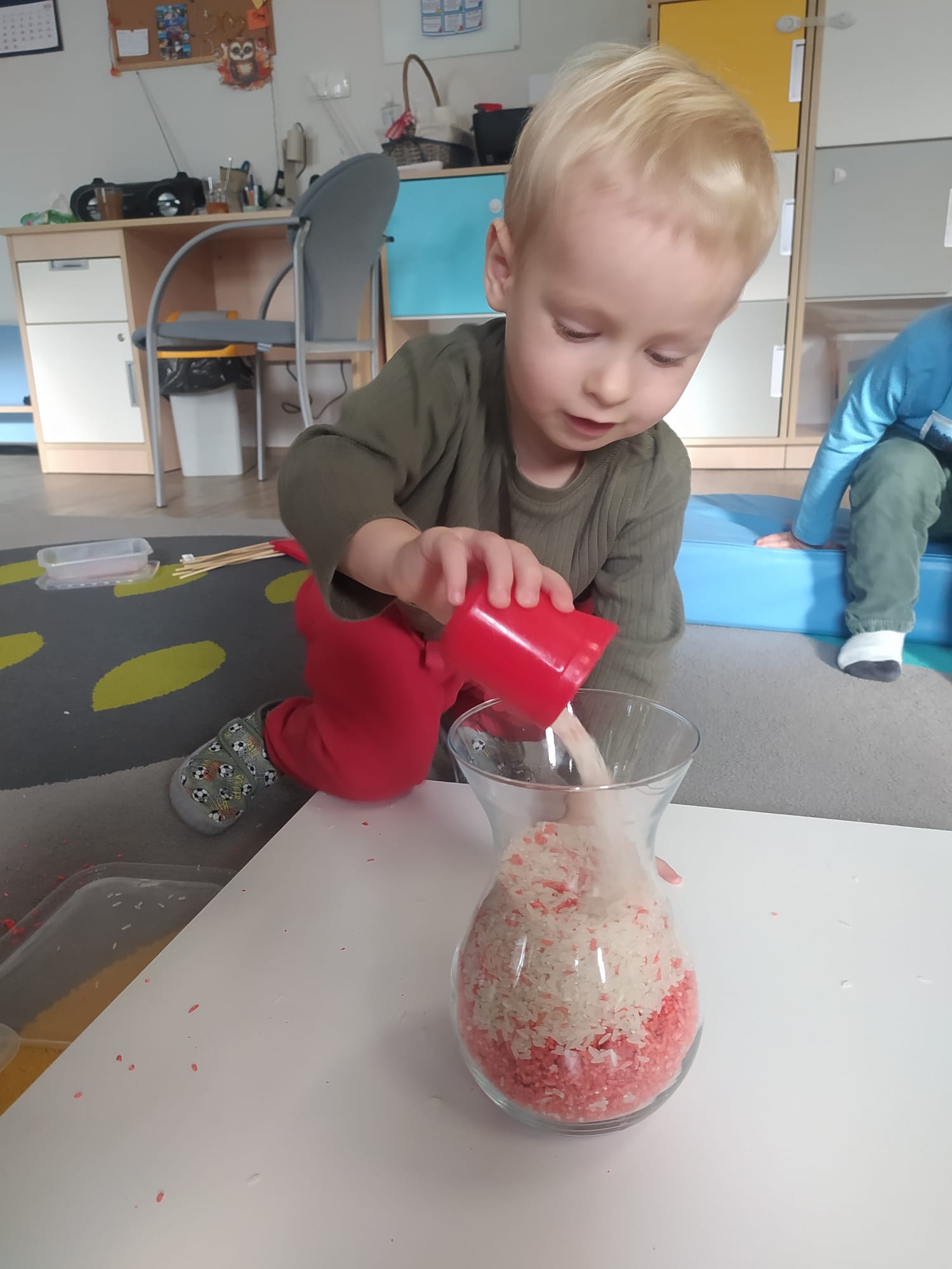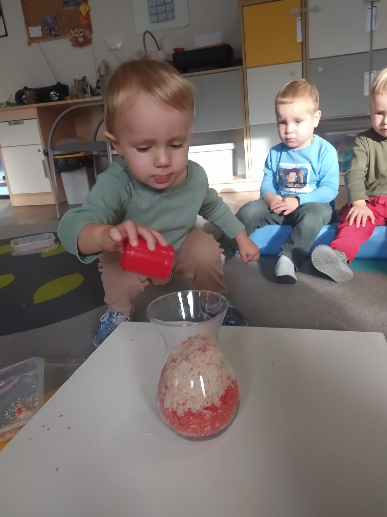W poprzednim tygodniu dzieci wysłuchały krótkiej rozmowy na temat naszego kraju- Polski. Opowiadały gdzie mieszkają i próbowały nazwać symbole narodowe. Wspólnie obejrzeliśmy ilustracje przedstawiające flagę, godło i mapę Polski. Maluszki dowiedziały się, że flaga ma dwa kolory- biały i czerwony, a na godle znajduje się biały orzeł. Następnie dzieci z powagą wysłuchały fragmentu hymnu narodowego, ucząc się, że podczas jego jego odtwarzania należy zachować postawę szacunku. Podczas zajęć plastycznych wykonaliśmy piękne flagi. Nie zabrakło też zabaw sensorycznych i ćwiczeń motoryki małej.