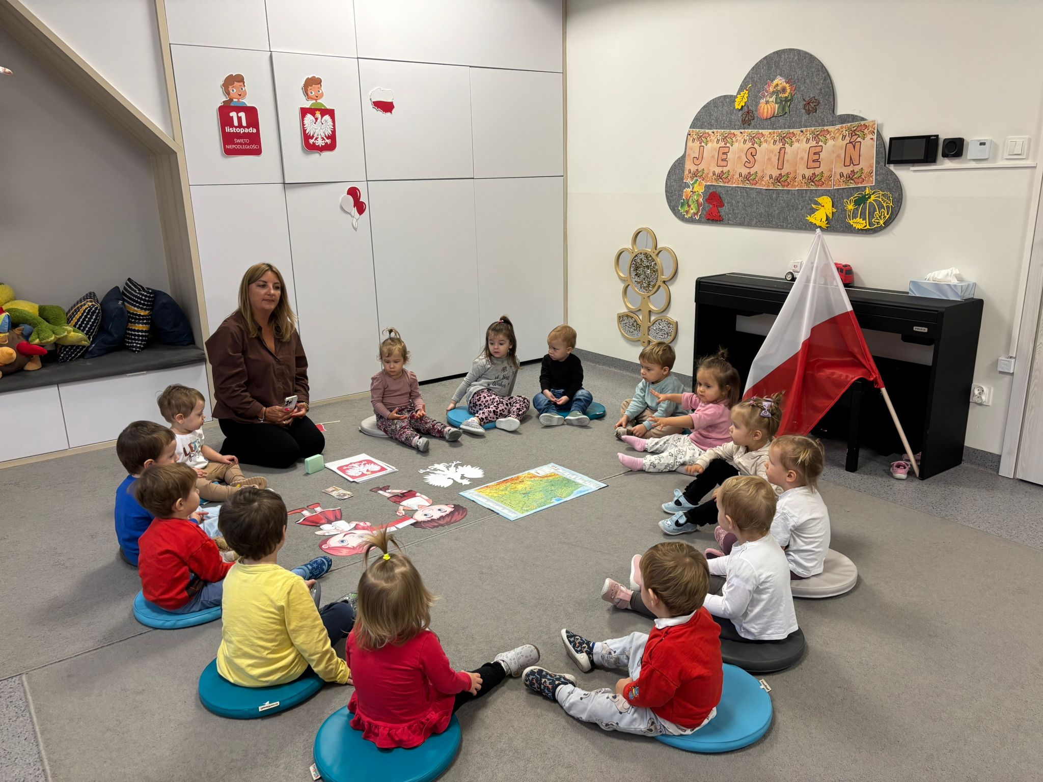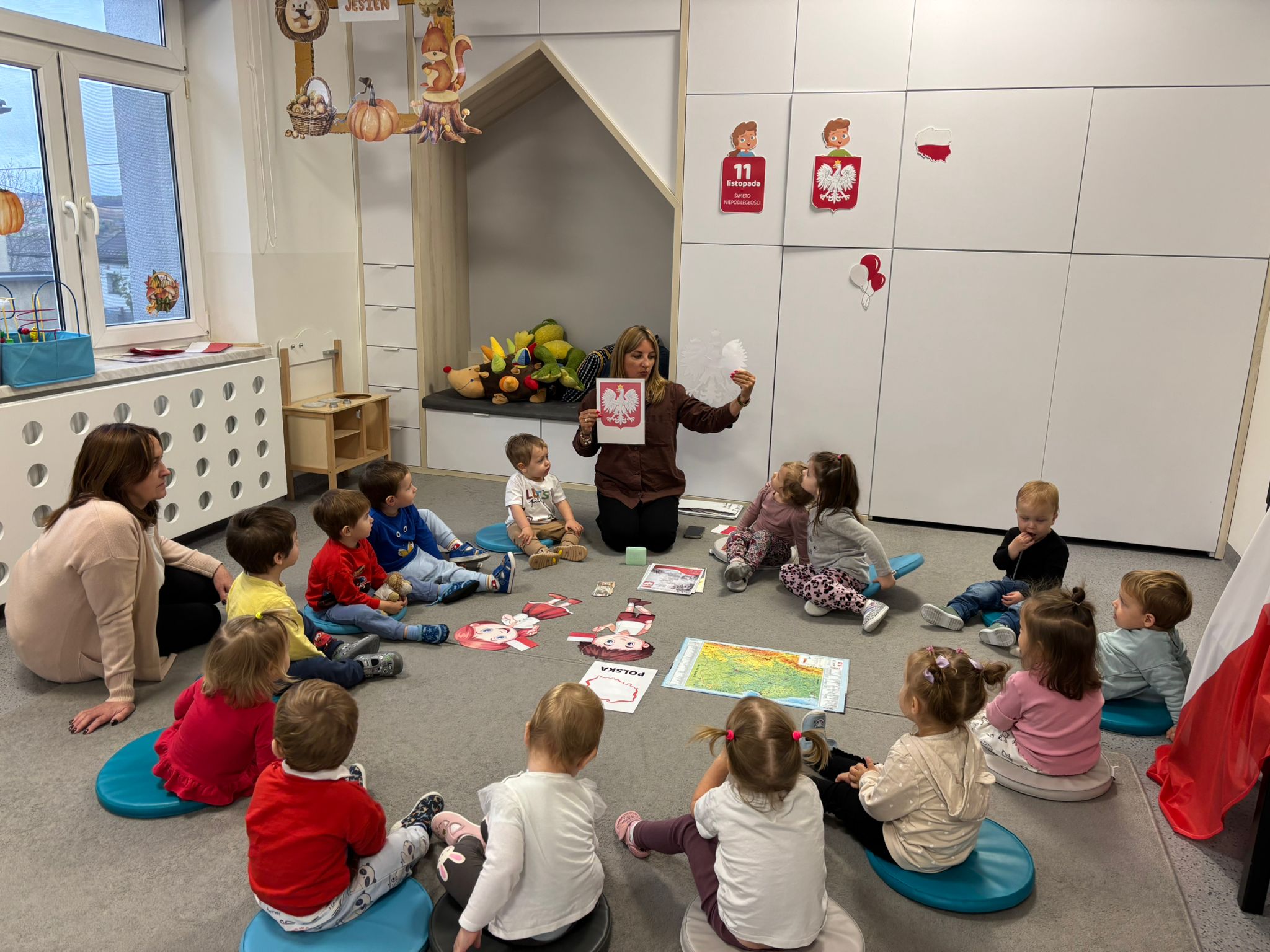 W tym tygodniu w naszym klubiku zrobiło się biało-czerwono! Nie zapomnieliśmy o tak ważnym święcie, jakim jest Święto Niepodległości. Poznaliśmy kolory naszej flagi – biały i czerwony – oraz najważniejsze symbole narodowe: flagę, godło i hymn Polski.