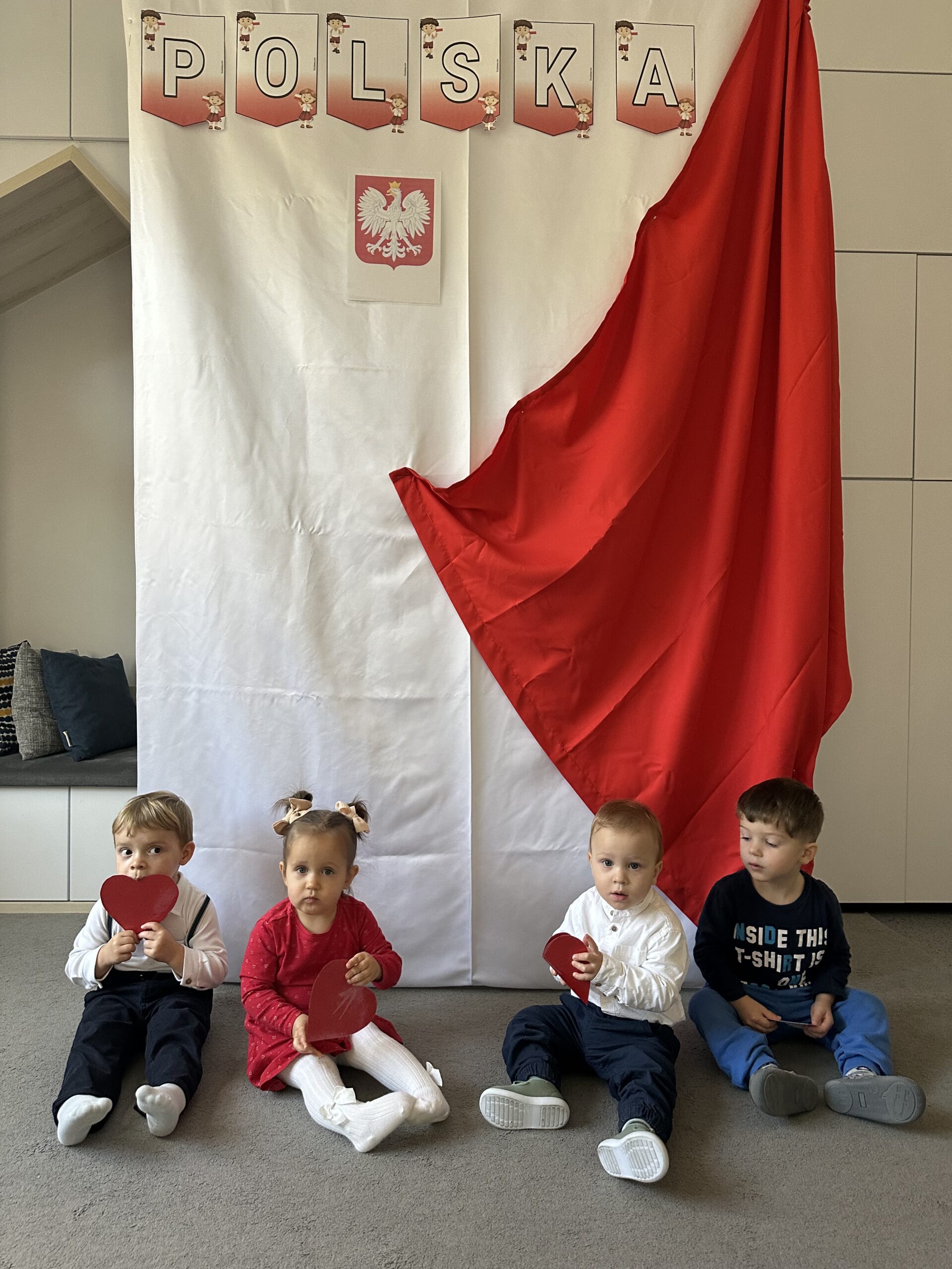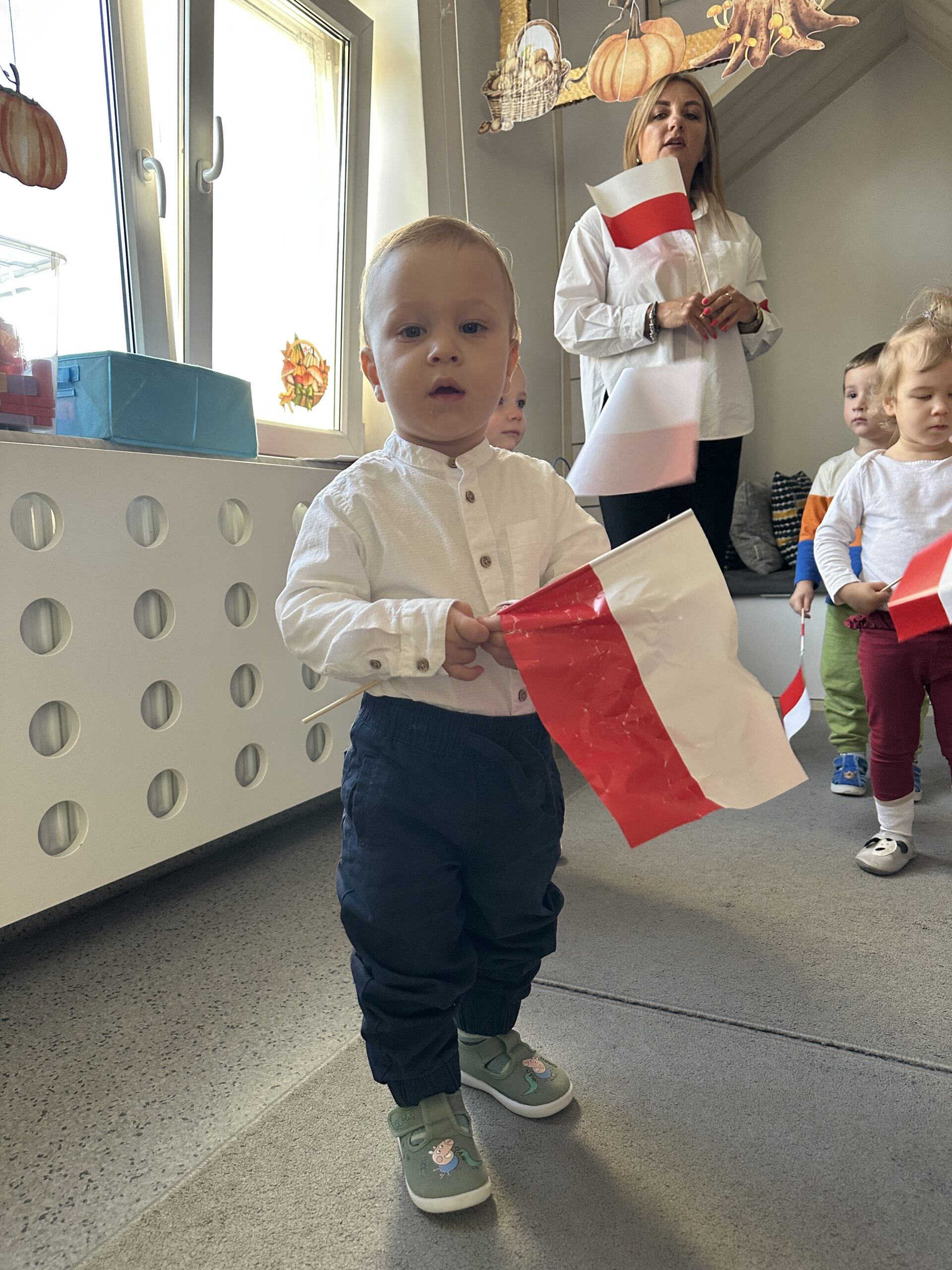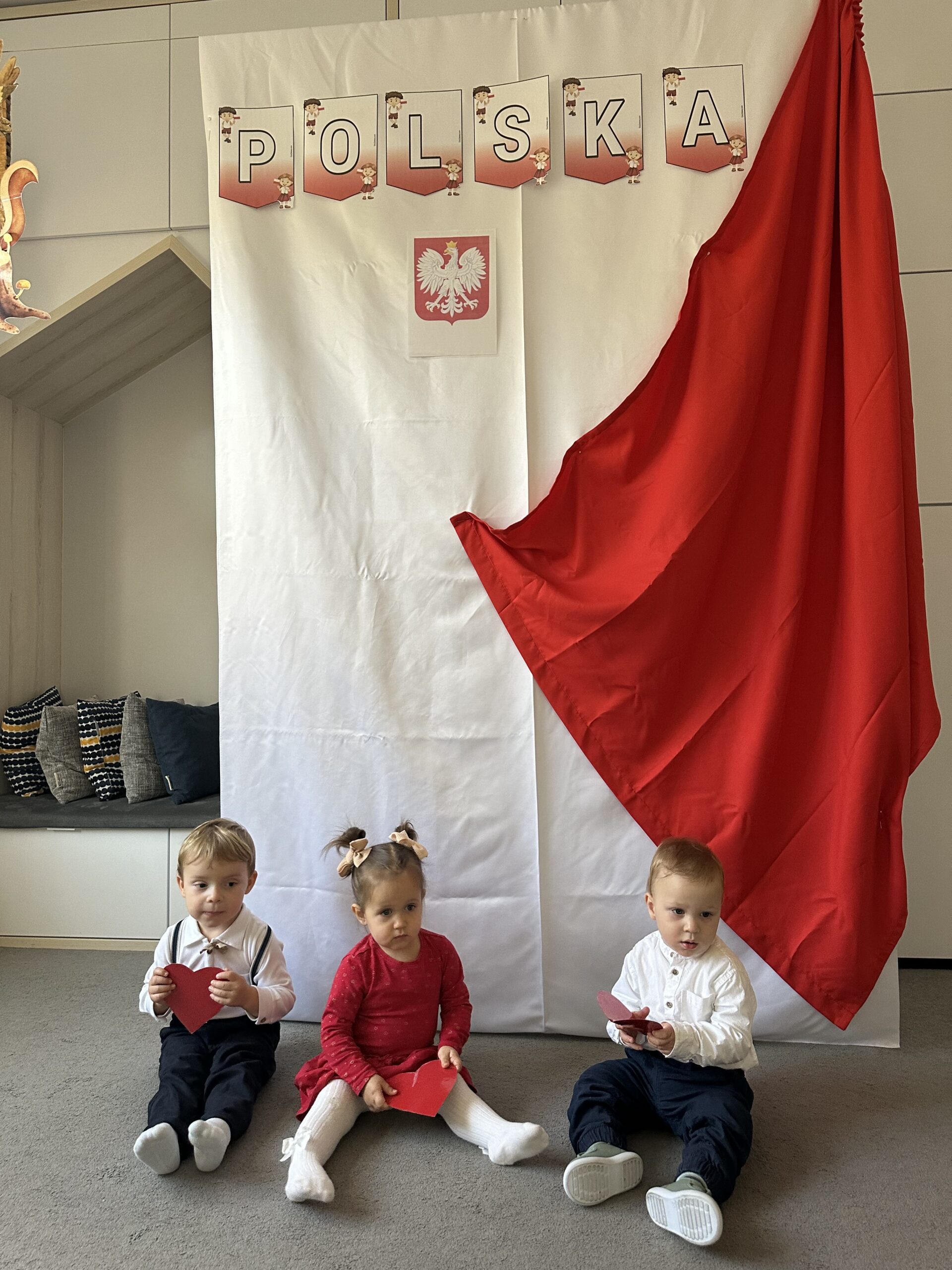 Na zajęciach plastycznych każdy z nas odbił swoją rączkę w barwach narodowych, tworząc piękną, patriotyczną pamiątkę. W czwartek, odświętnie ubrani, wspólnie i z dumą wysłuchaliśmy hymnu Polski. Ten dzień przeżywaliśmy z uśmiechem na twarzy i sercem pełnym radości – jak prawdziwi patrioci!