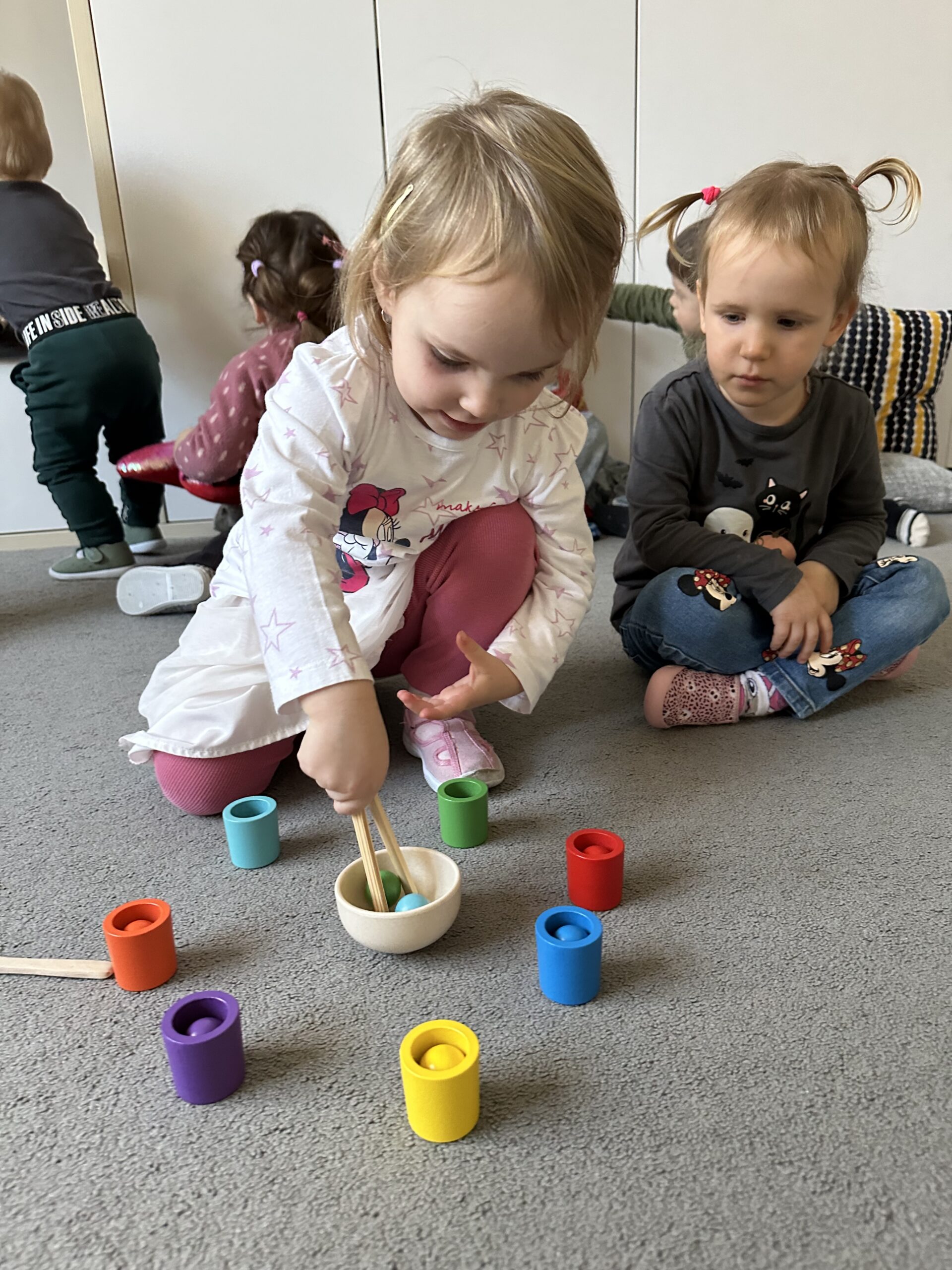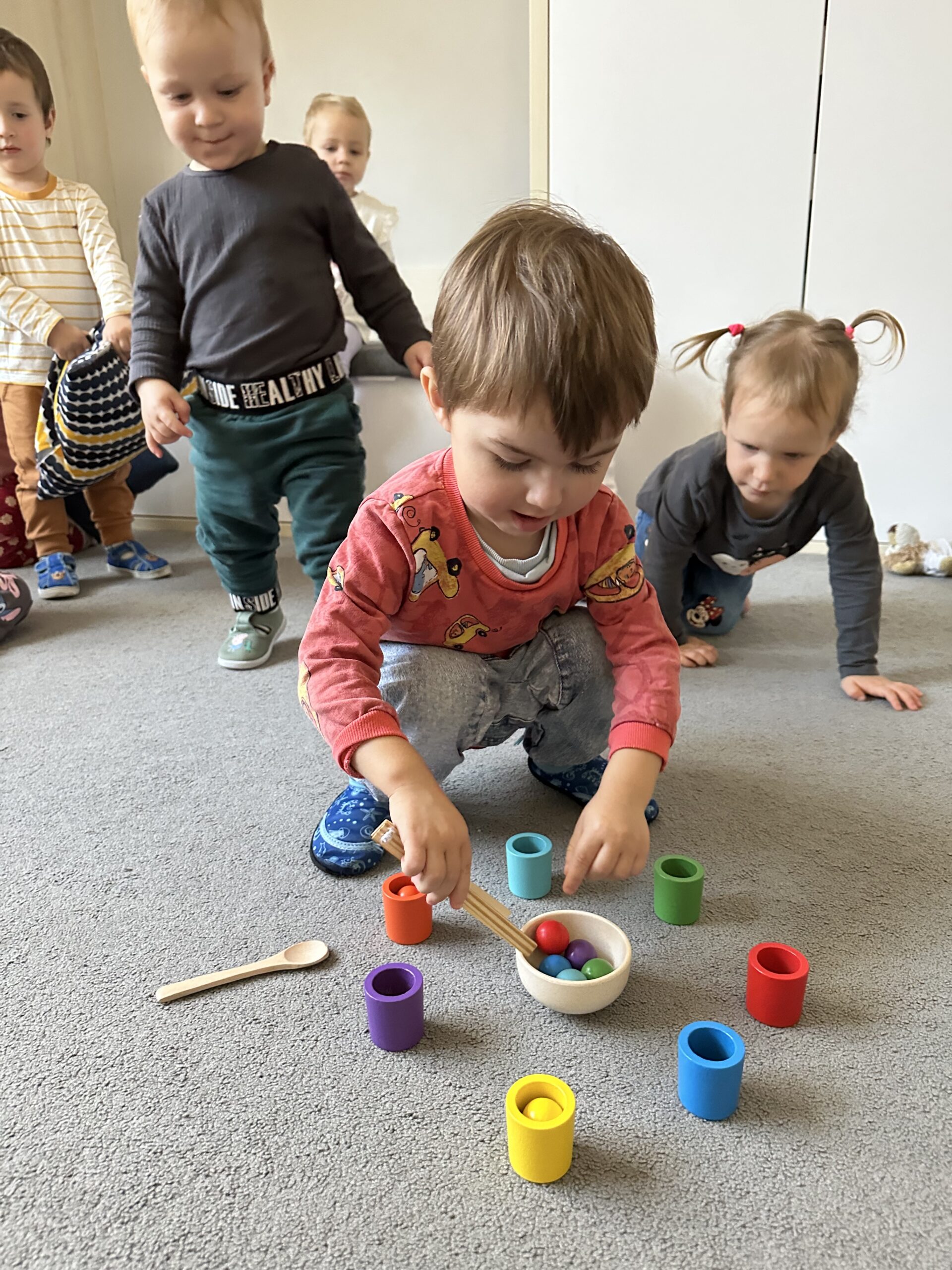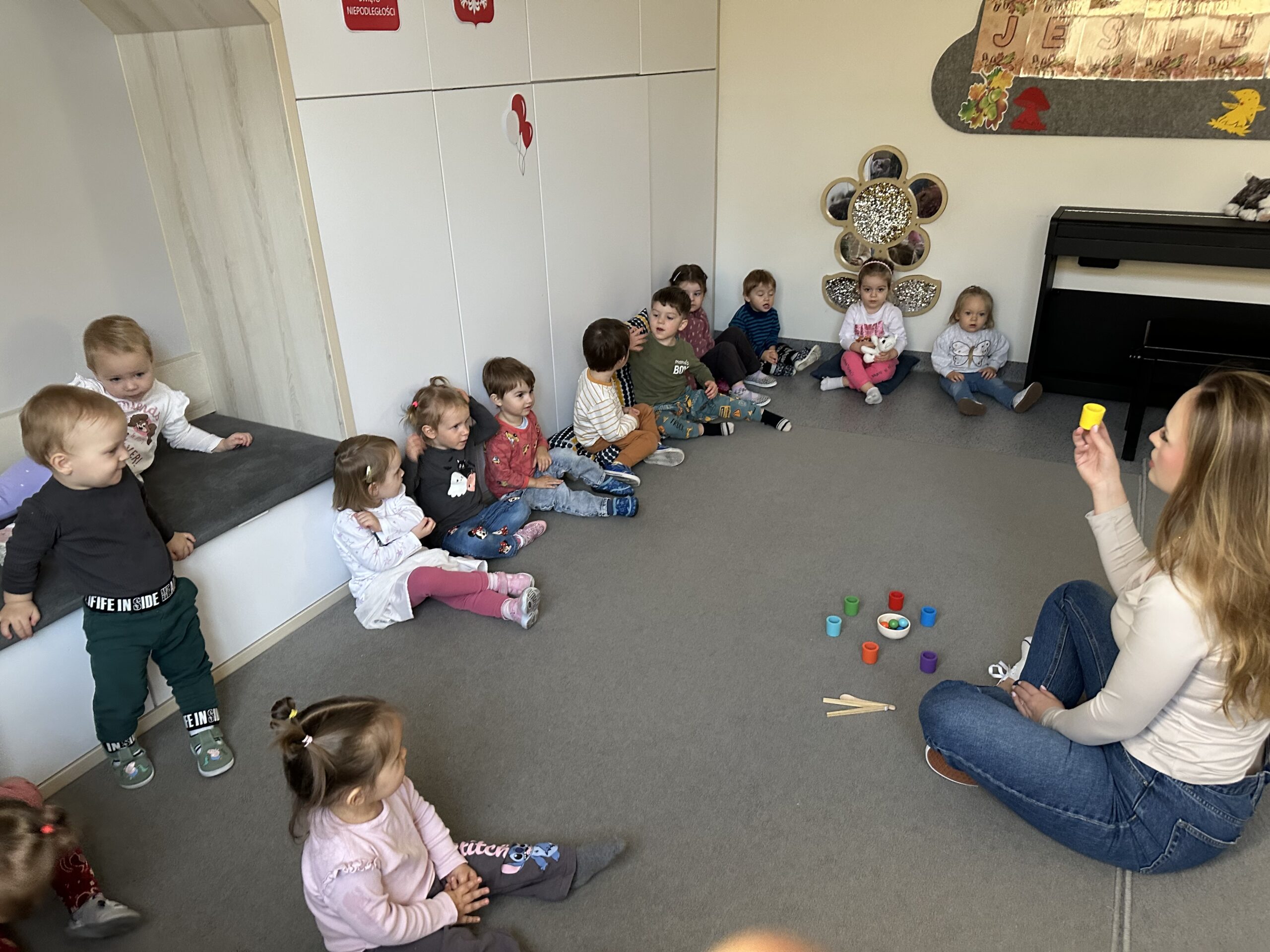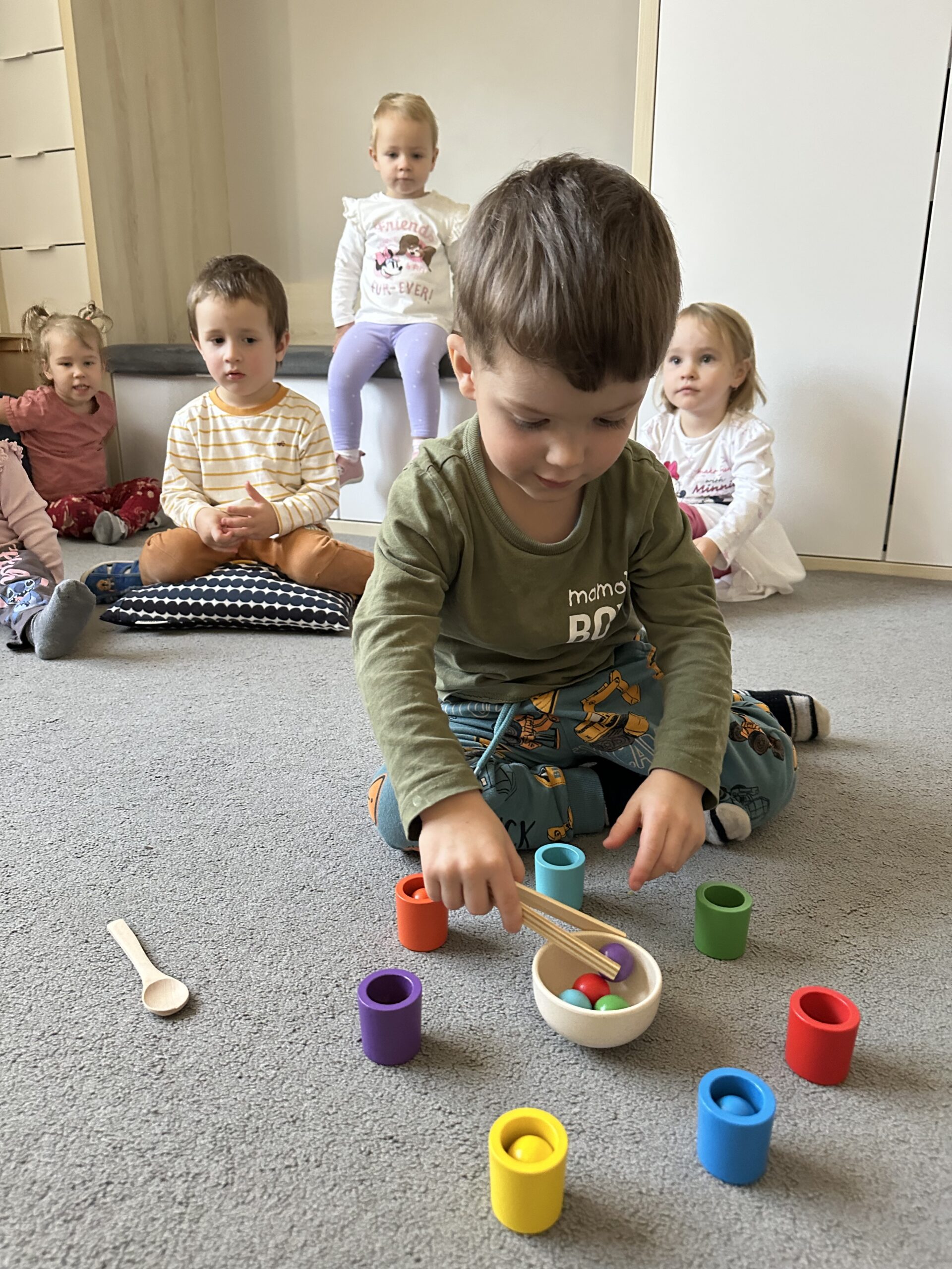 Podczas zajęć z języka angielskiego zagraliśmy w grę dydaktyczną związaną z kolorami, dzięki której utrwalaliśmy poznane barwy oraz ćwiczyliśmy motorykę małą.
