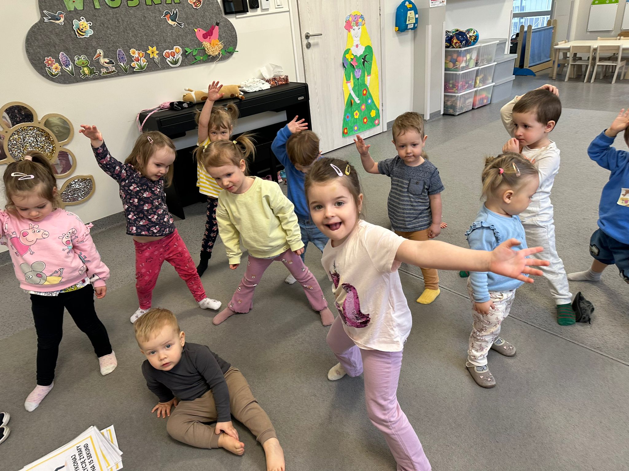 W tym tygodniu poznaliśmy jak ważny jest ruch. Bawiliśmy się, ćwiczyliśmy i tańczyliśmy, dzięki czemu rozwijaliśmy naszą sprawność i koordynację. Chętnie biegaliśmy, skakaliśmy i bawiliśmy się piłką. Ćwiczyliśmy również prostą jogę dla dzieci, która pomogła nam się wyciszyć i rozluźnić. Na zajęciach plastycznych kolorowaliśmy kredkami piłki, rozwijając naszą kreatywność . Aktywność na świeżym powietrzu także sprawiła nam dużo radości i pomagała nam zdrowo się rozwijać.