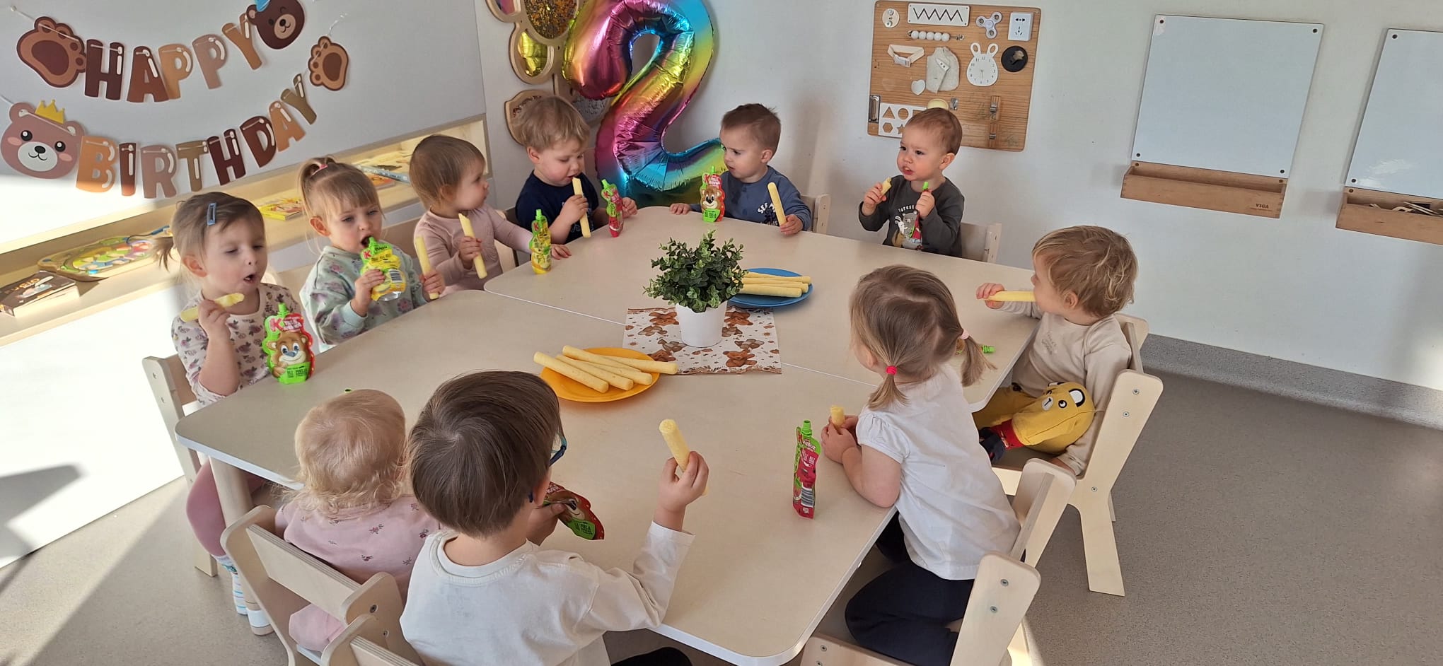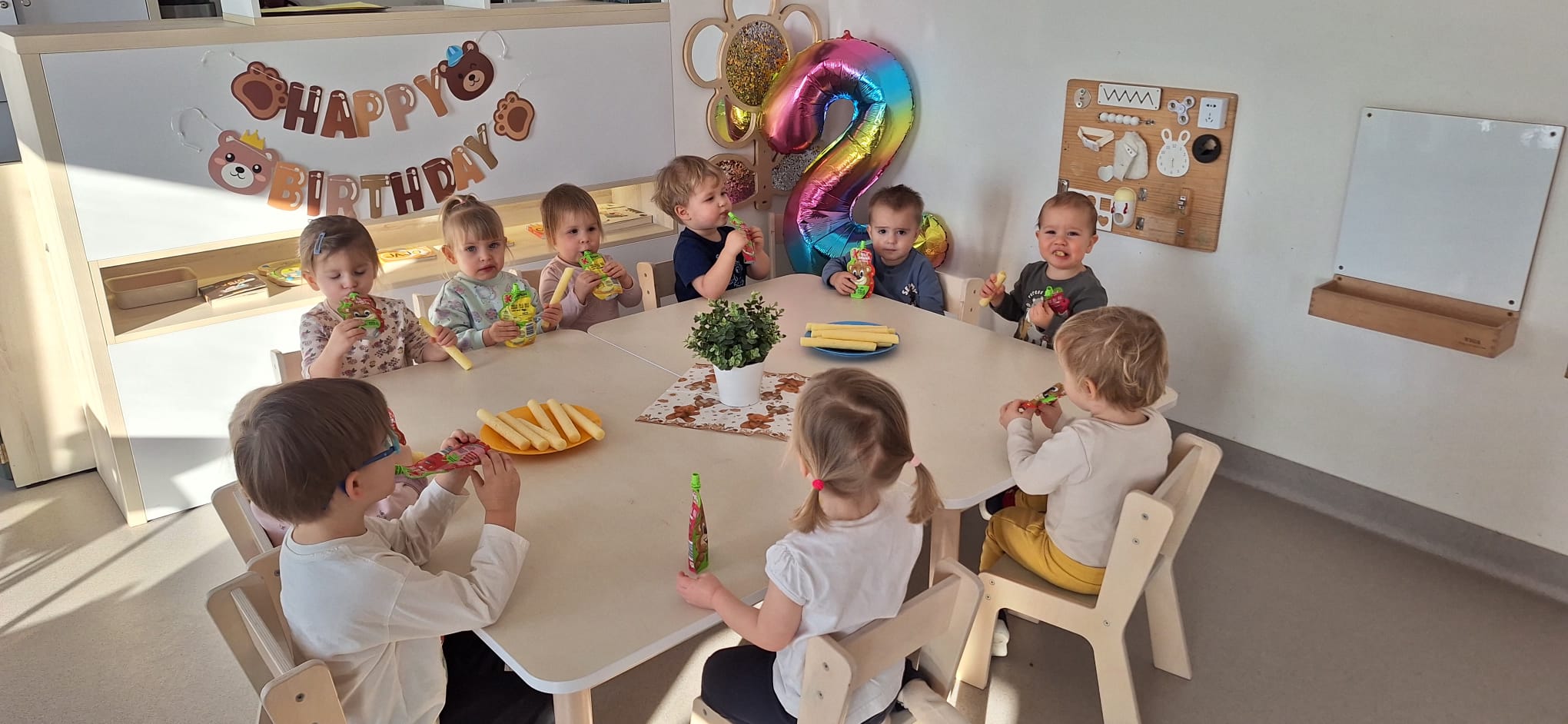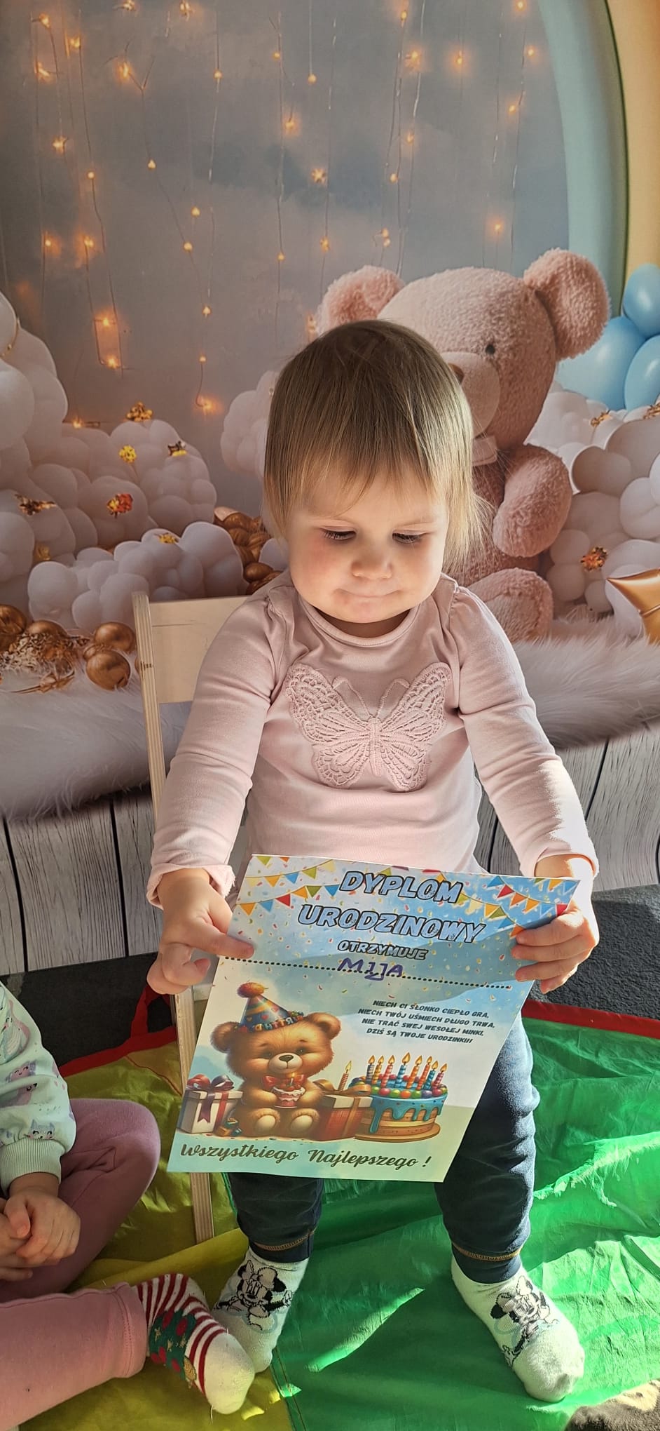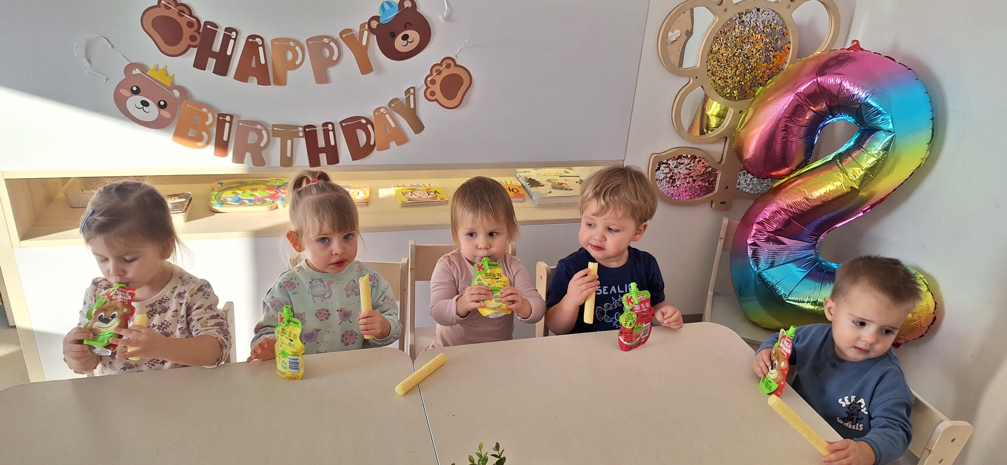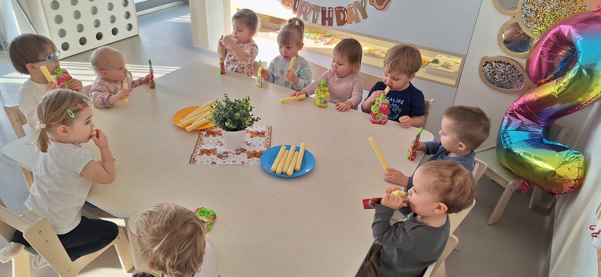 To był dzień pełen wspólnej zabawy. Kolorowa chusta poszła w ruch! 🌈 Falowaliśmy, podrzucaliśmy balonik 🎈 i świetnie się bawiliśmy, dbając o to, by Jubilatka czuła się naprawdę wyjątkowo ✨.