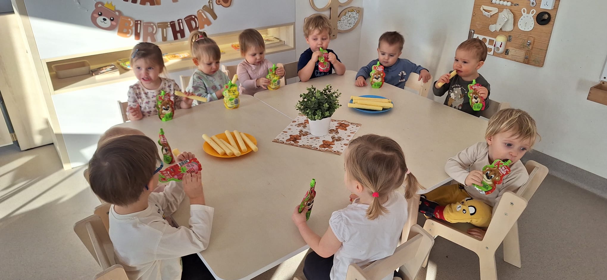 Świętowanie rozpoczęliśmy w naszym kręgu, gdzie wszyscy razem zaśpiewaliśmy radosne „Sto lat” 🎶👏.