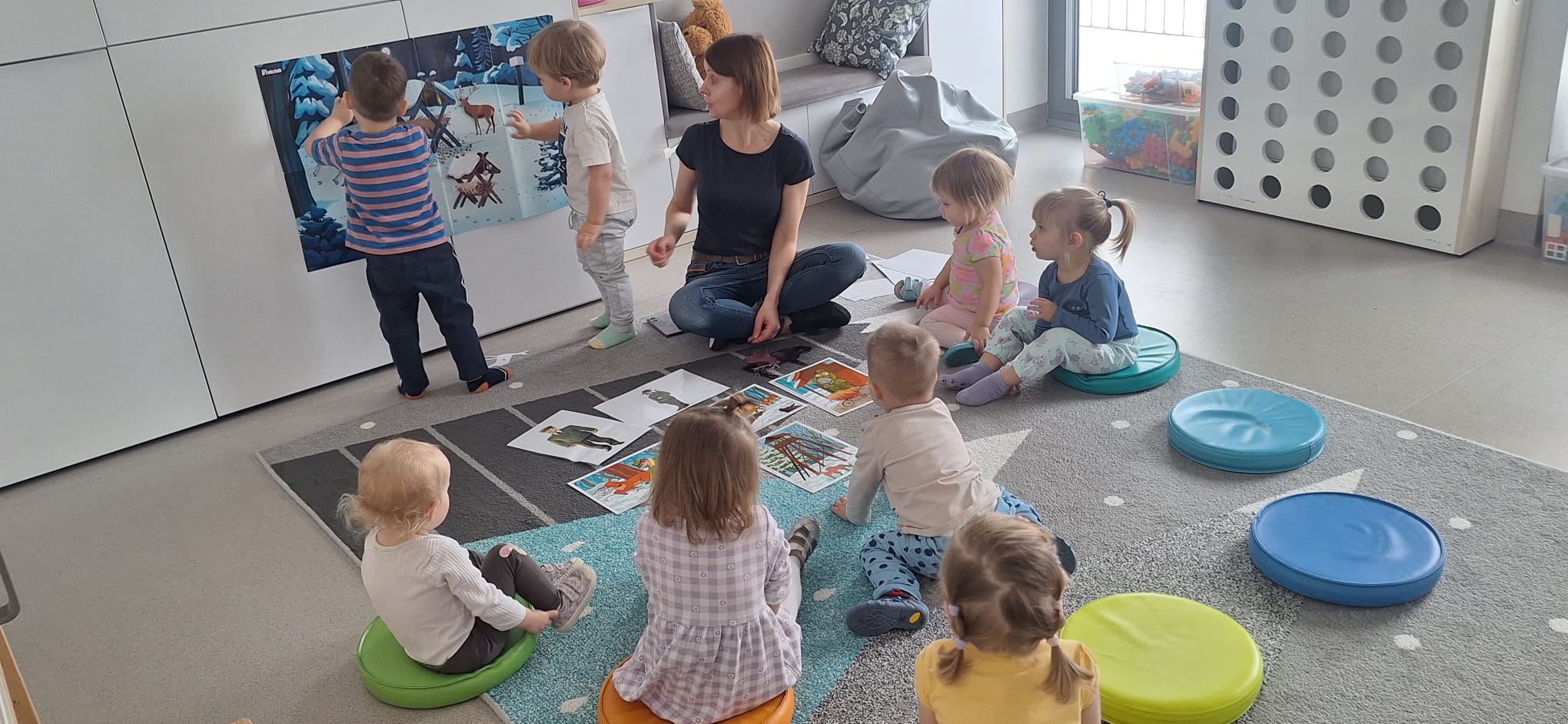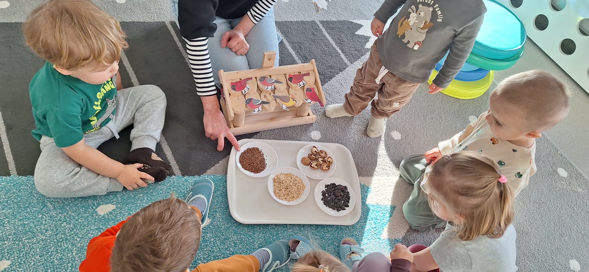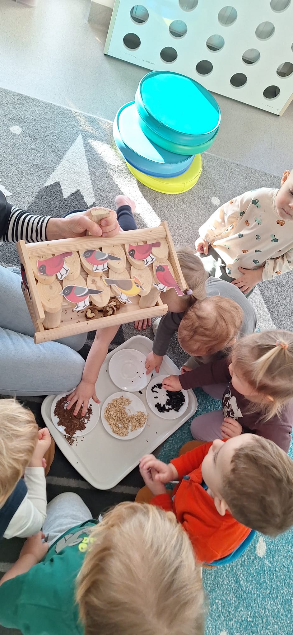 Skupiliśmy się na tym, jak mądrze pomagać zwierzętom przetrwać mrozy. Naszą szczególną uwagę skradły ptaki, które nie odlatują do ciepłych krajów, lecz zostają z nami w Polsce. Dzieci dowiedziały się, co jedzą ptaki zimą, oraz samodzielnie uzupełniały zapasy w karmniku 🌻🥜Poznaliśmy także gatunki ptaków zimujących w Polsce, tworząc naszą własną ptasią galerię, która pomoże dzieciom rozpoznać gości odwiedzających nasz karmnik.
